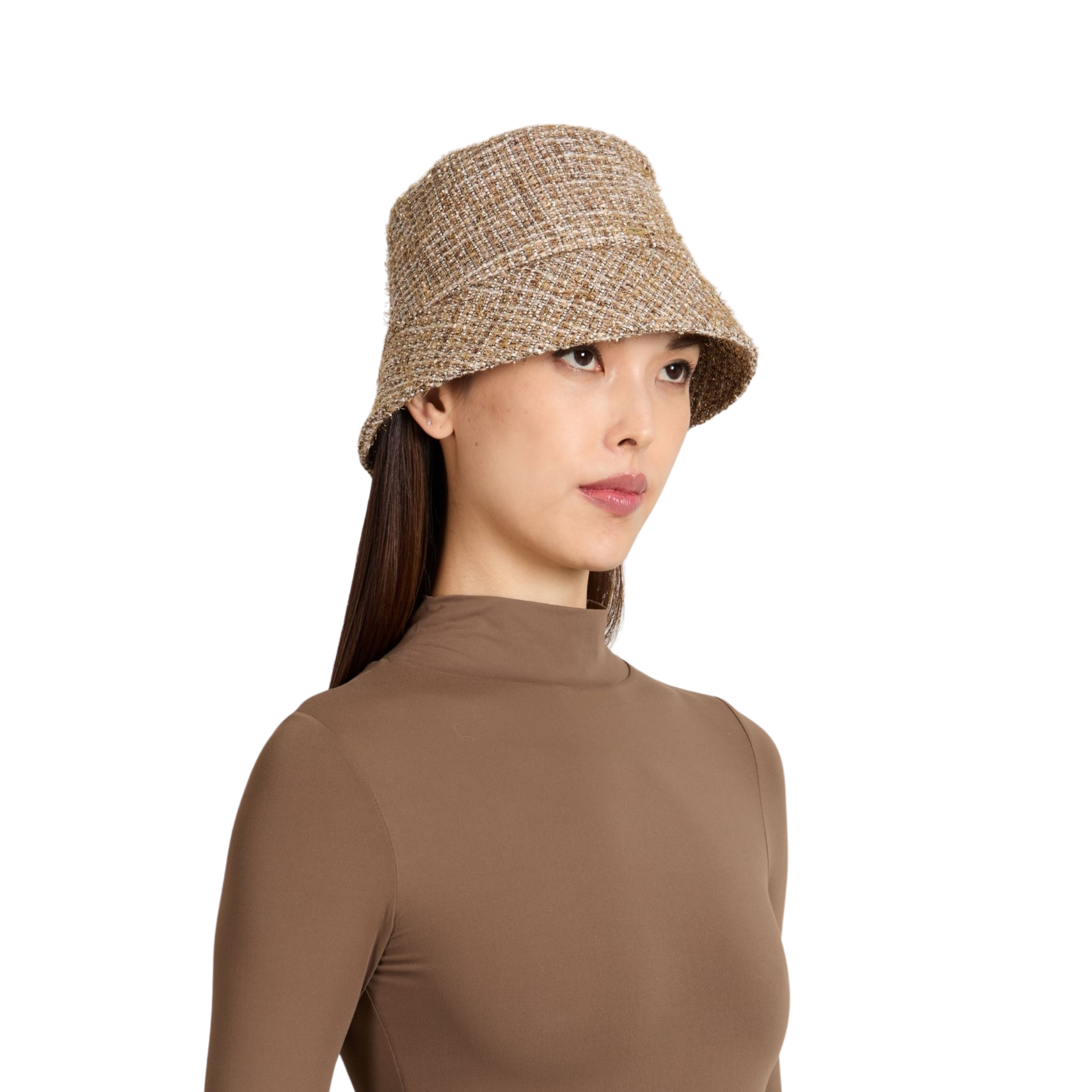 Elevated ease meets cool-weather polish. The Yuki hat returns for Pre-Fall 2025 in a luxe gold and camel tweed—a rich, textured neutral that transitions effortlessly from late summer to crisp autumn days. Finished with a sculptural silhouette and signature Eugenia Kim sophistication, Yuki is your go-to for understated glamour and seasonless style.