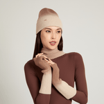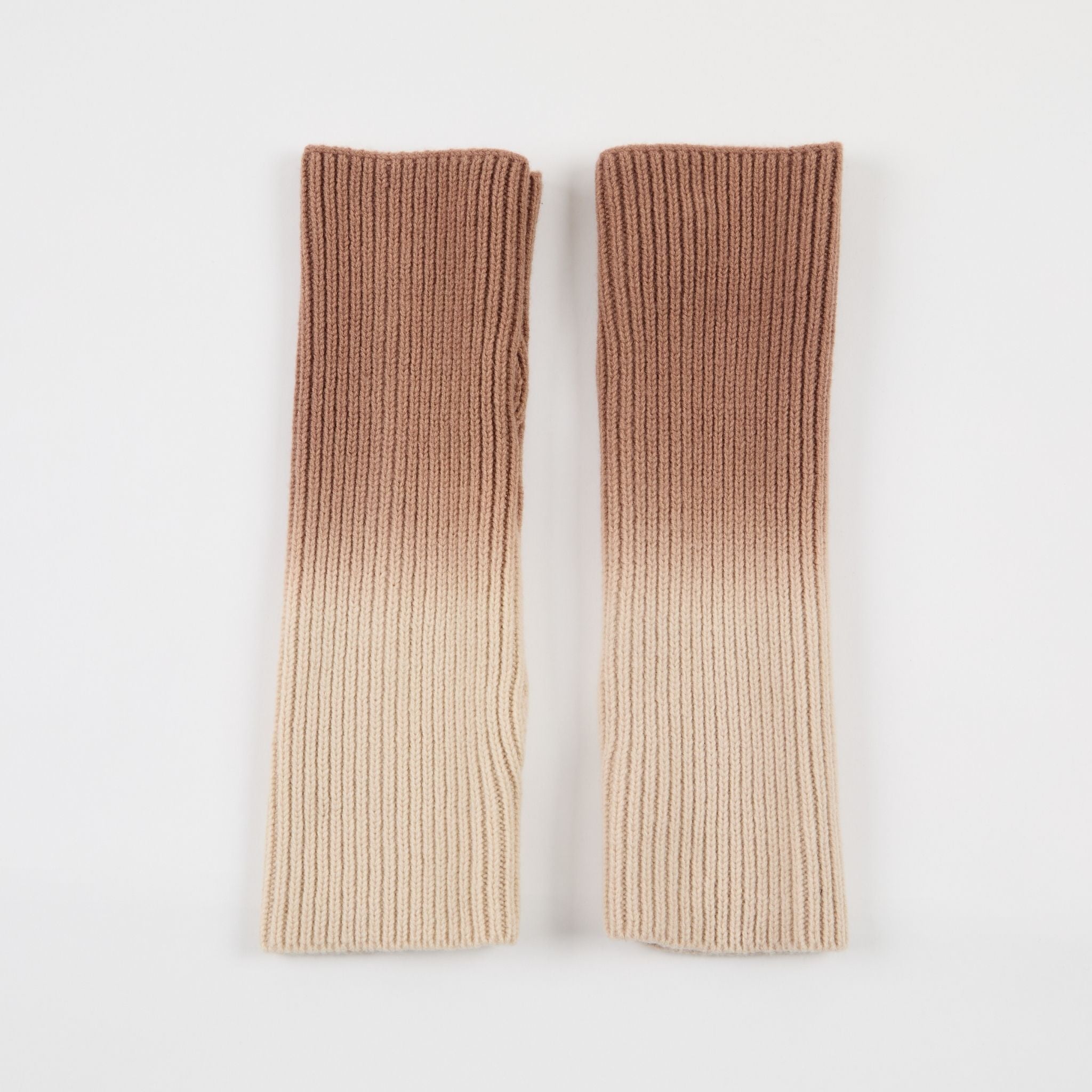 Our fingerless gloves in ivory and Camel merino wool offer comfort without compromise. Rib-knit and dip-dyed, they are for mornings with meaning and hands that stay close to the heart.