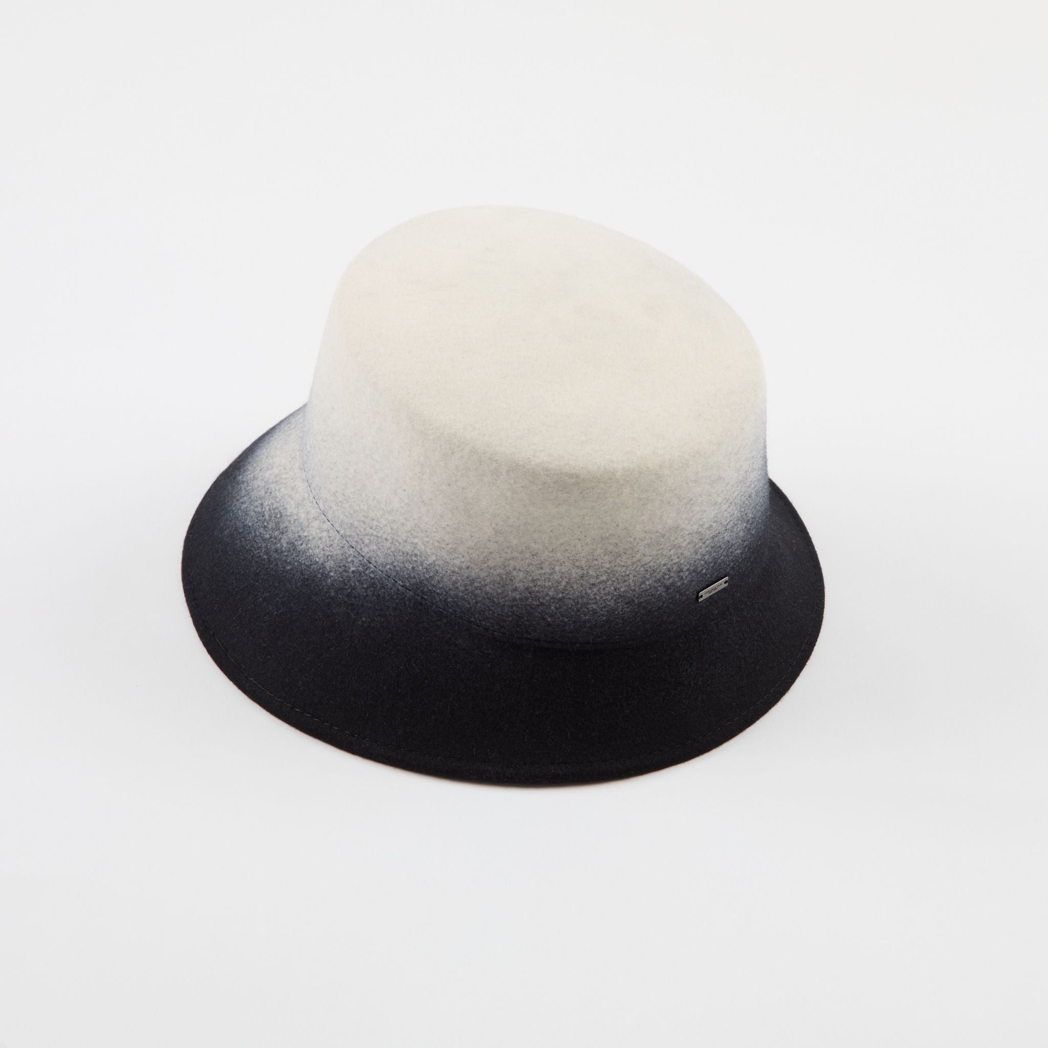 Winter white/black gradient-print wool felt asymmetric bucket hat