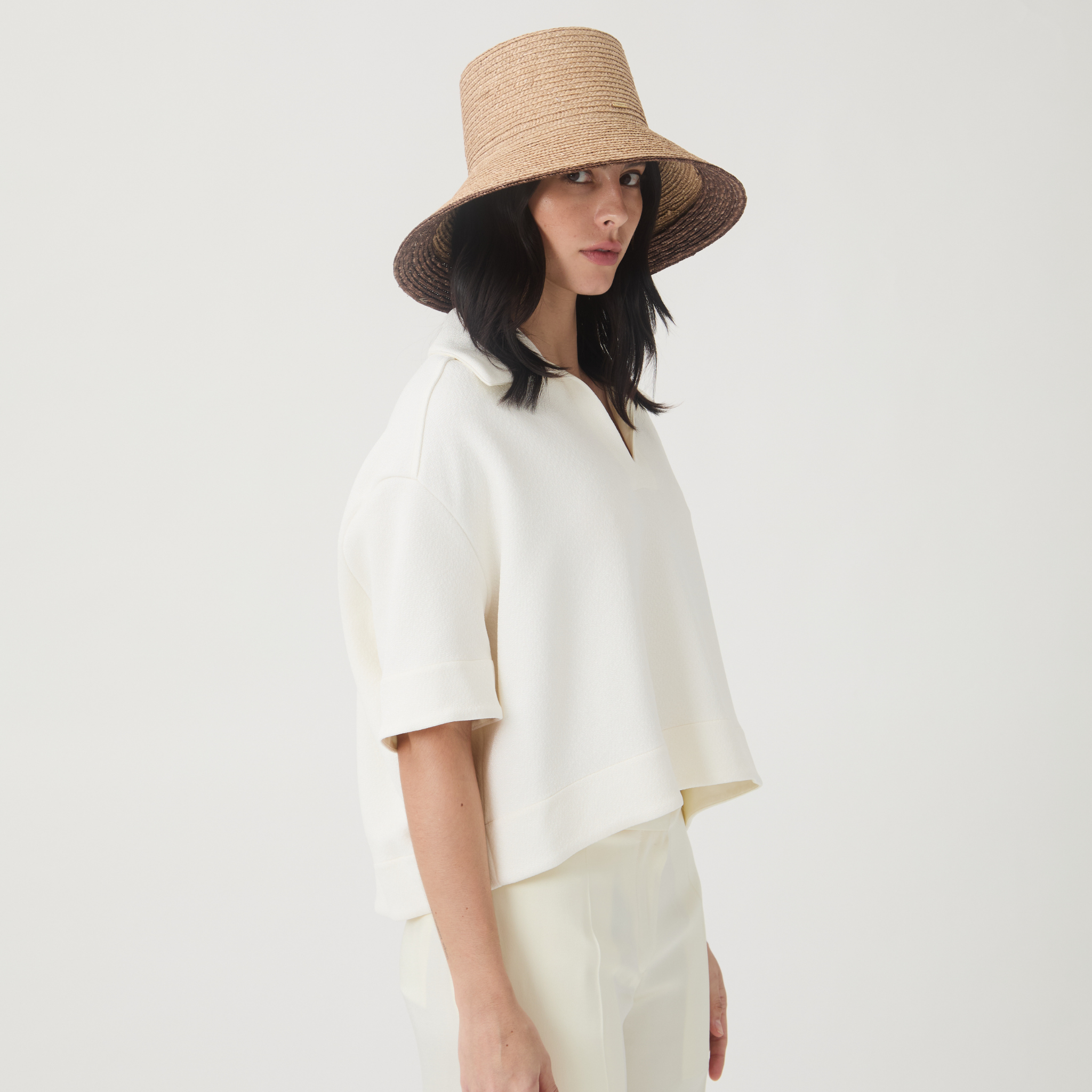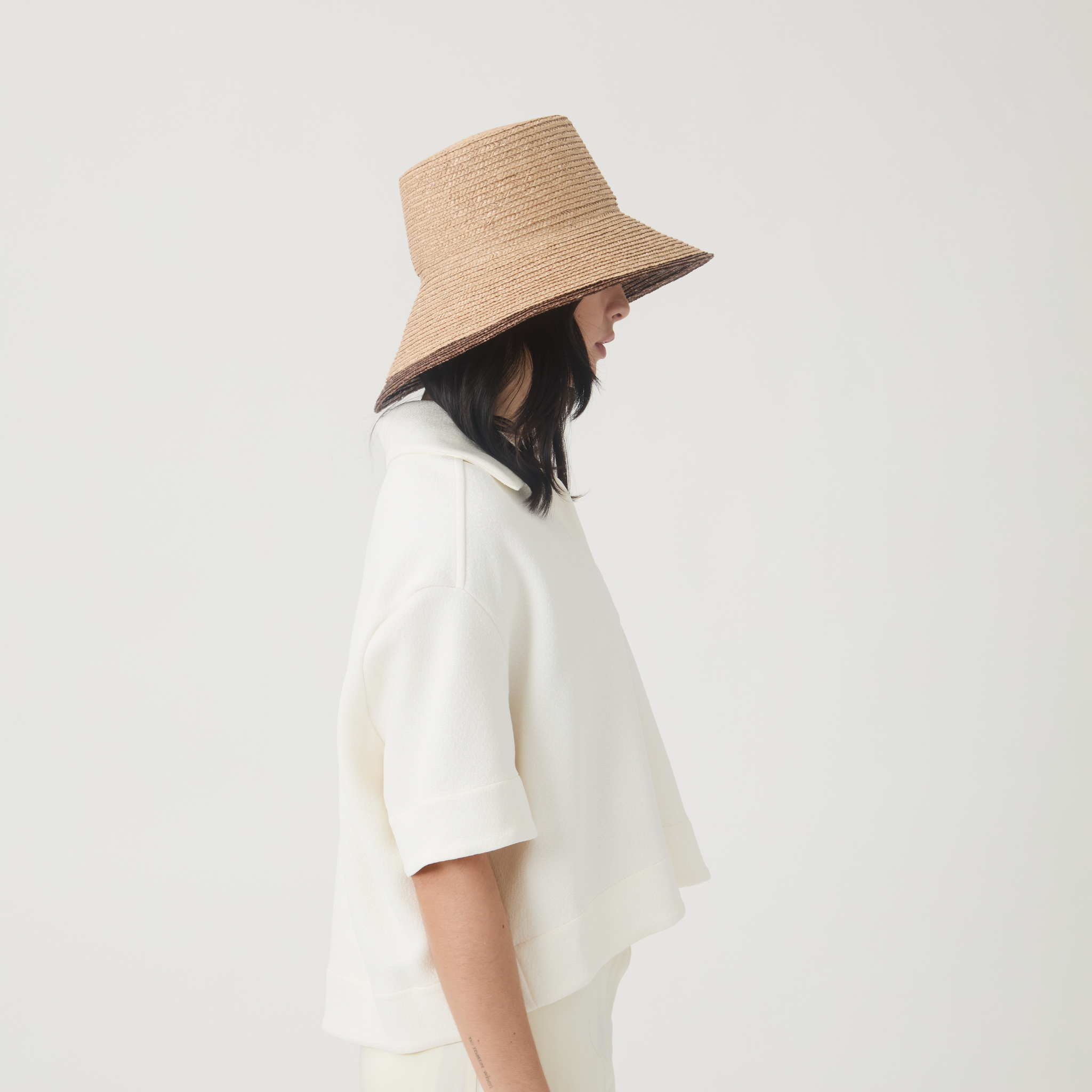 Annabelle recalls breezy terraces, shaded garden paths, and sunlight lingering on warm afternoons. Crafted in straw, its sculpted brim frames the face with effortless poise. It carries a sophistication that feels both natural and intentional.