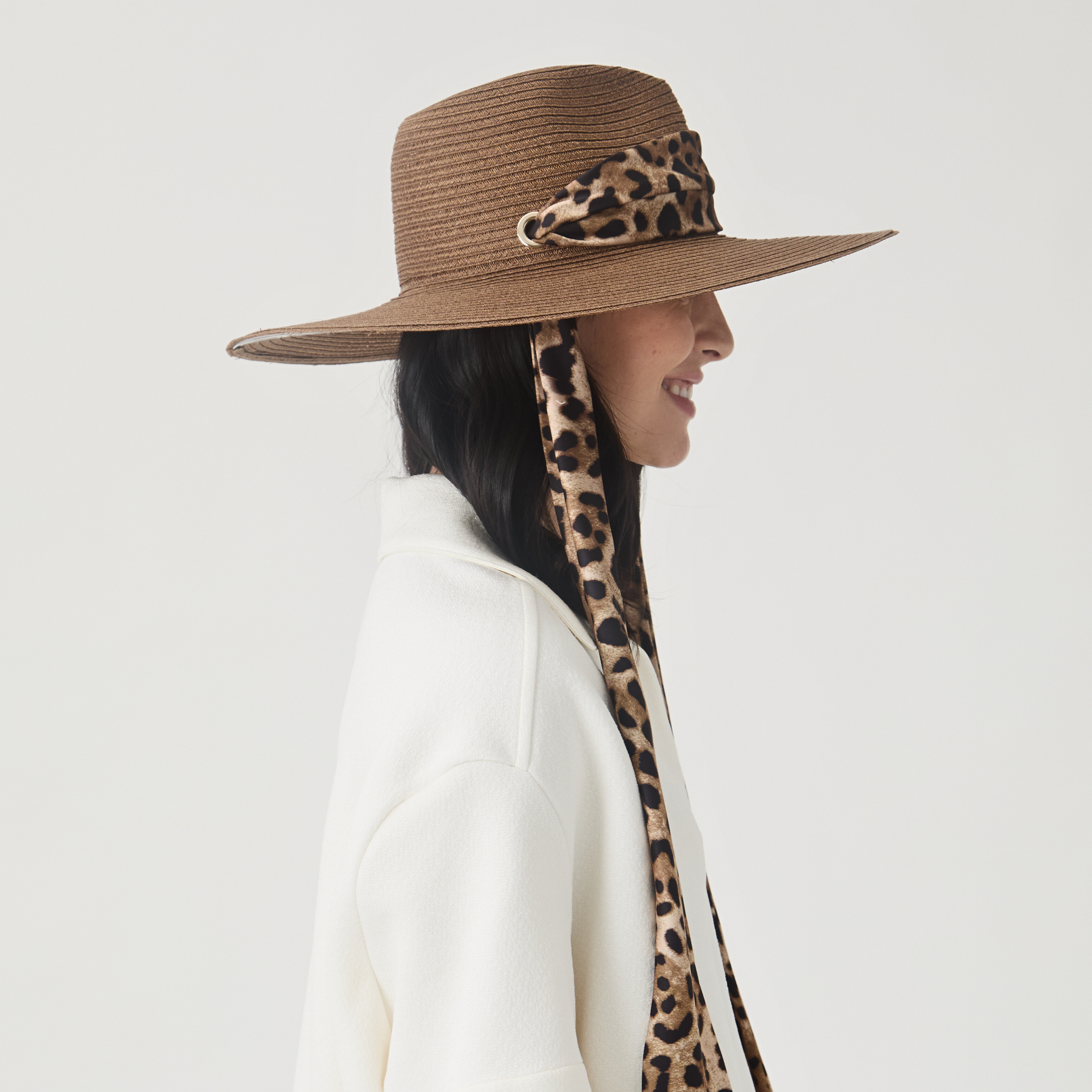 The Cassidy Hat in chocolate exudes a soft, sun-lit elegance that elevates every ensemble. Finished with a beautiful patterned satin pull-through scarf, this style blends modern sophistication with grace. Crafted in chocolate vented hemp.
