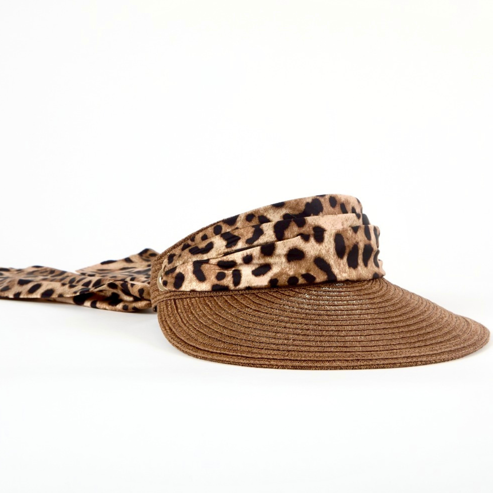 Ricky embraces statement style with confidence. Crafted from vented hemp, its curved visor offers sun coverage, while a flowing leopard-print satin scarf brings a touch of bold flair. Ricky evokes poolside afternoons and the kind of carefree moments when style feels instinctive.