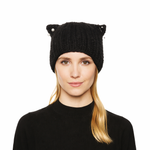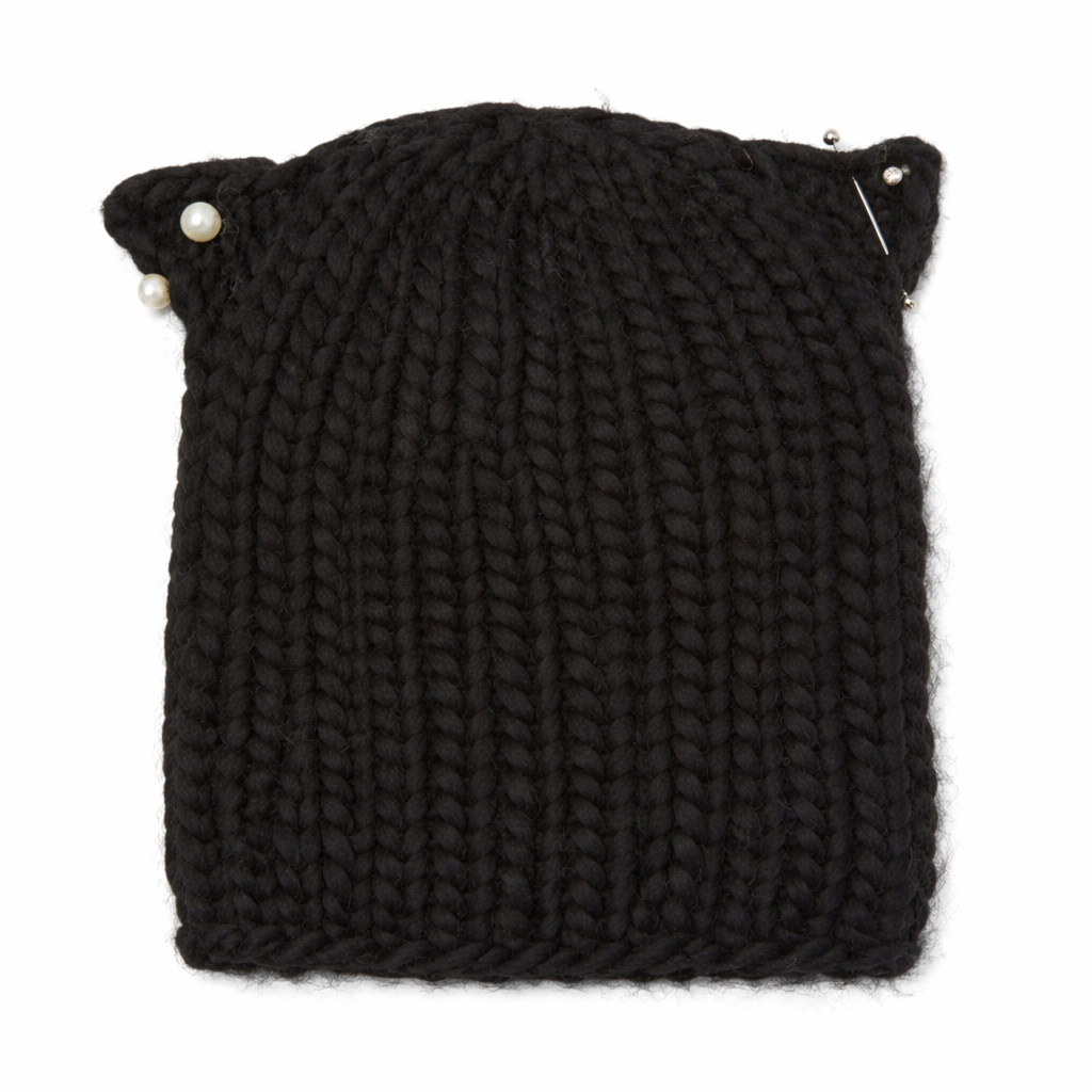 A playful twist on a winter classic. The Felix beanie features chunky knit cat ears embellished with pearl and barbell-inspired piercings, finished with crystal studs for subtle edge.
