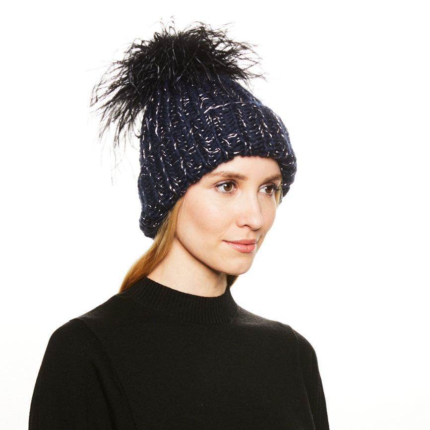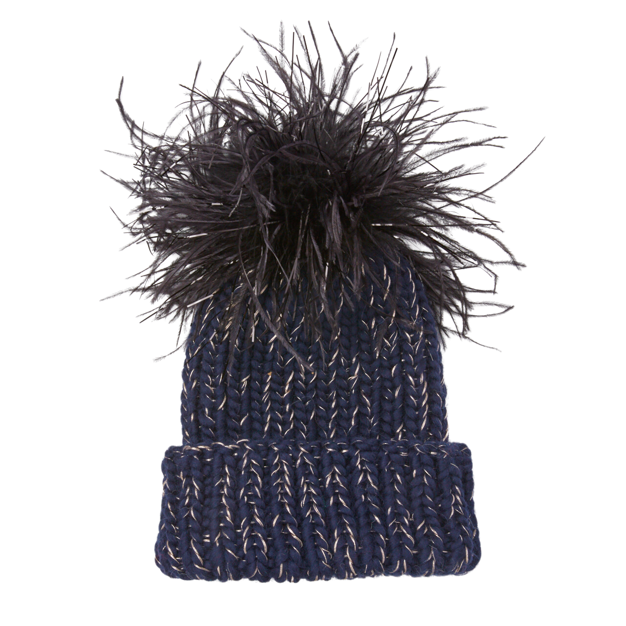 Black metallic ostrich pom, Rose gold metal yarn.