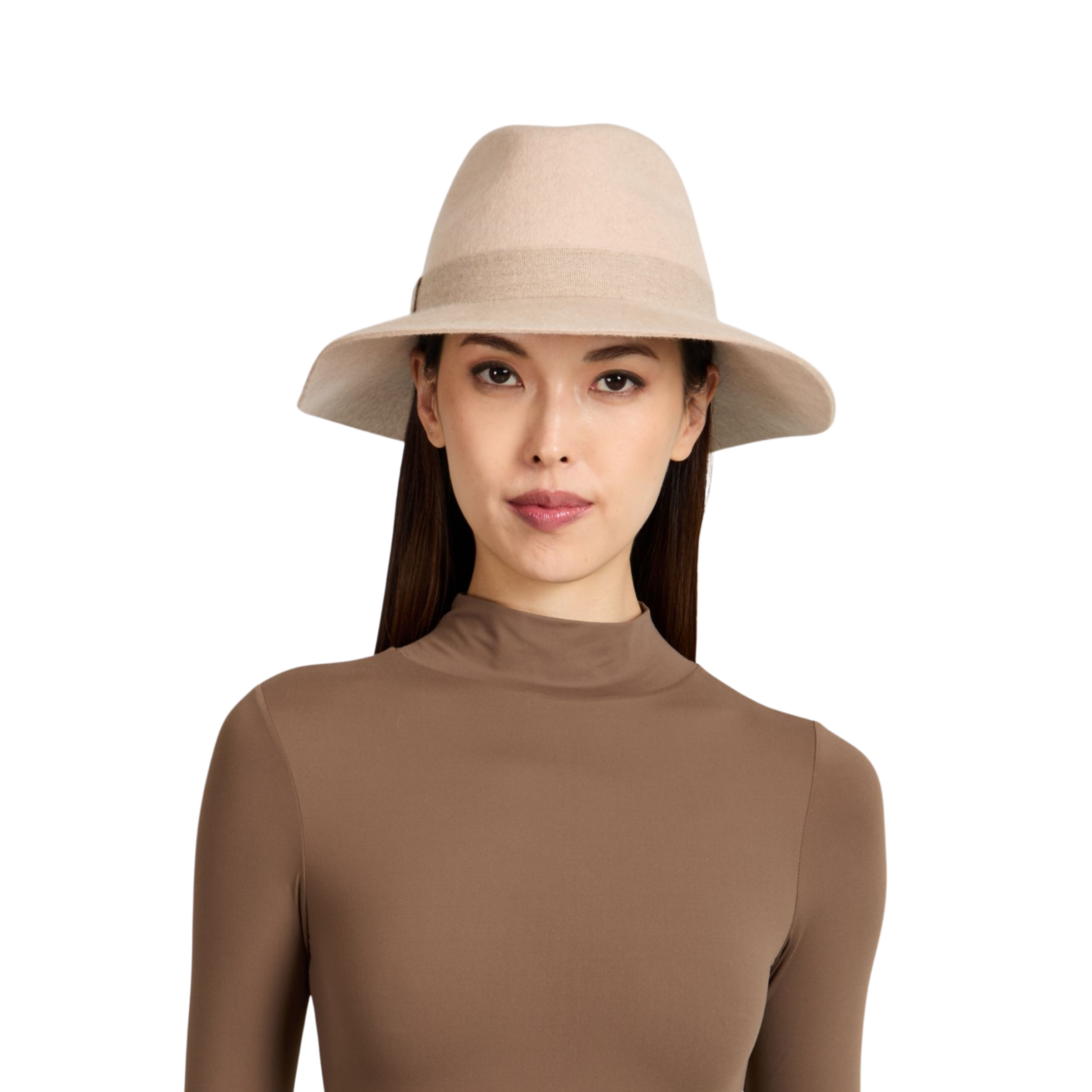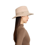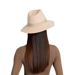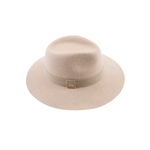 A study in soft structure, the Georgina Fedora pairs bone mélange wool felt with an oatmeal cashmere ribbon for a look that’s serene yet sculptural. Finished with a 14KT gold logo plate, it’s minimalism with meaning.