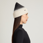Crafted in dip-dye merino wool, this ivory and black beanie is made for moments that blend comfort with style. The gunmetal logo plate adds a subtle edge to its soft embrace.