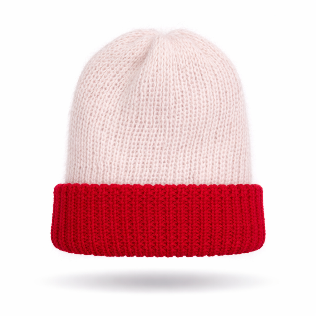Reversible Heather Italian angora and wool knit beanie in Pale Pink and Red.