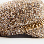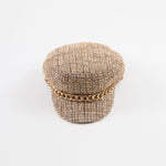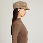 Fall’s most refined statement starts at the top. The Marina Hat returns in rich chocolate wool, reimagined for Pre-Fall with a moodier palette and modern edge. A sculpted silhouette is trimmed with a gleaming gold chain along the brim—striking the perfect balance between softness and strength.
