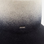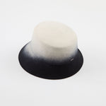 Striking yet subtle, the Ruby Bucket Hat features a winter white to black gradient in soft wool felt. With an asymmetric brim and gunmetal logo plate, it's an edgy twist on classic elegance.