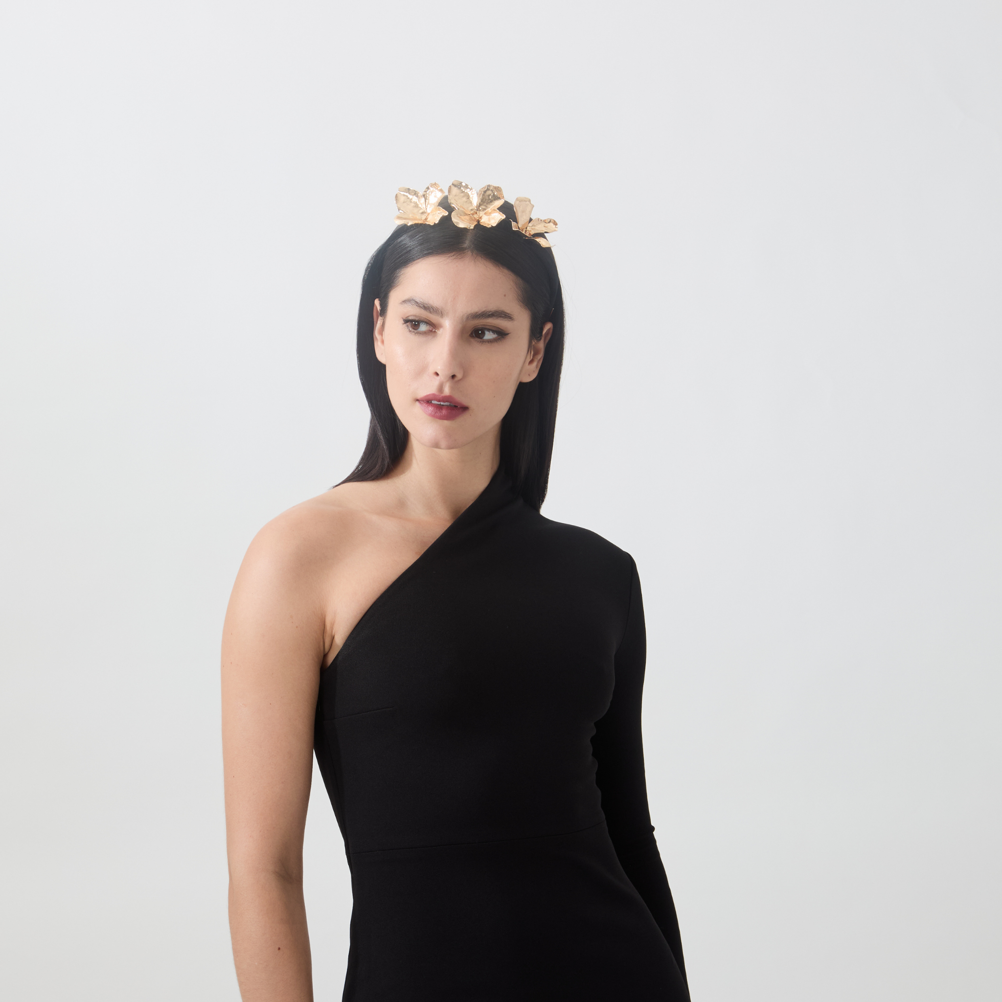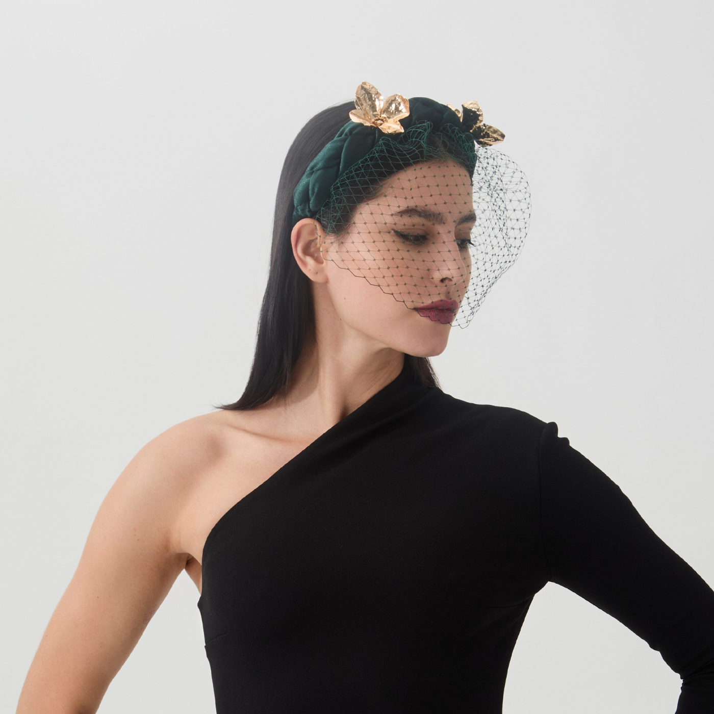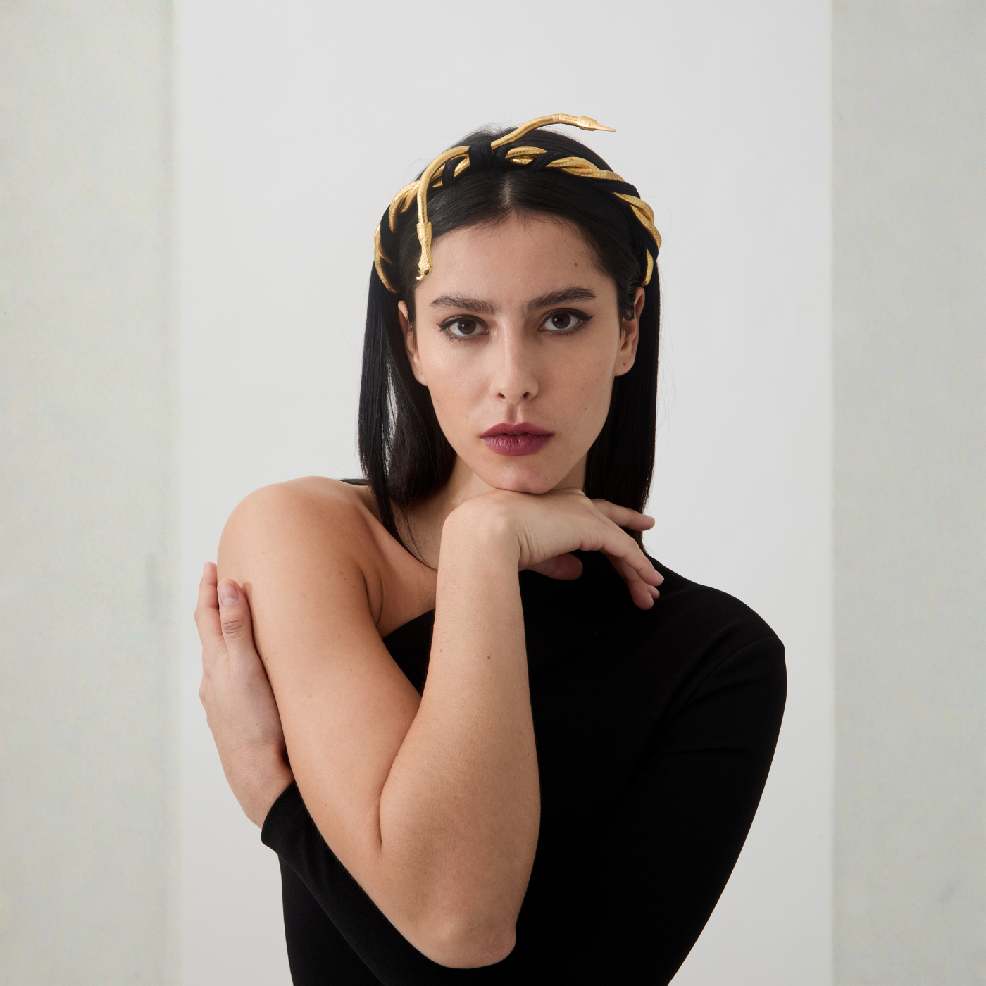 A celebration of light, texture, and timeless allure. This collectoin captures the seductive glamour of Old Hollywood’s femme fatales — from sculptural velvet headpieces to gold-drenched embellishments. Each piece evokes desire, mystery, and the quiet power of cinematic elegance.