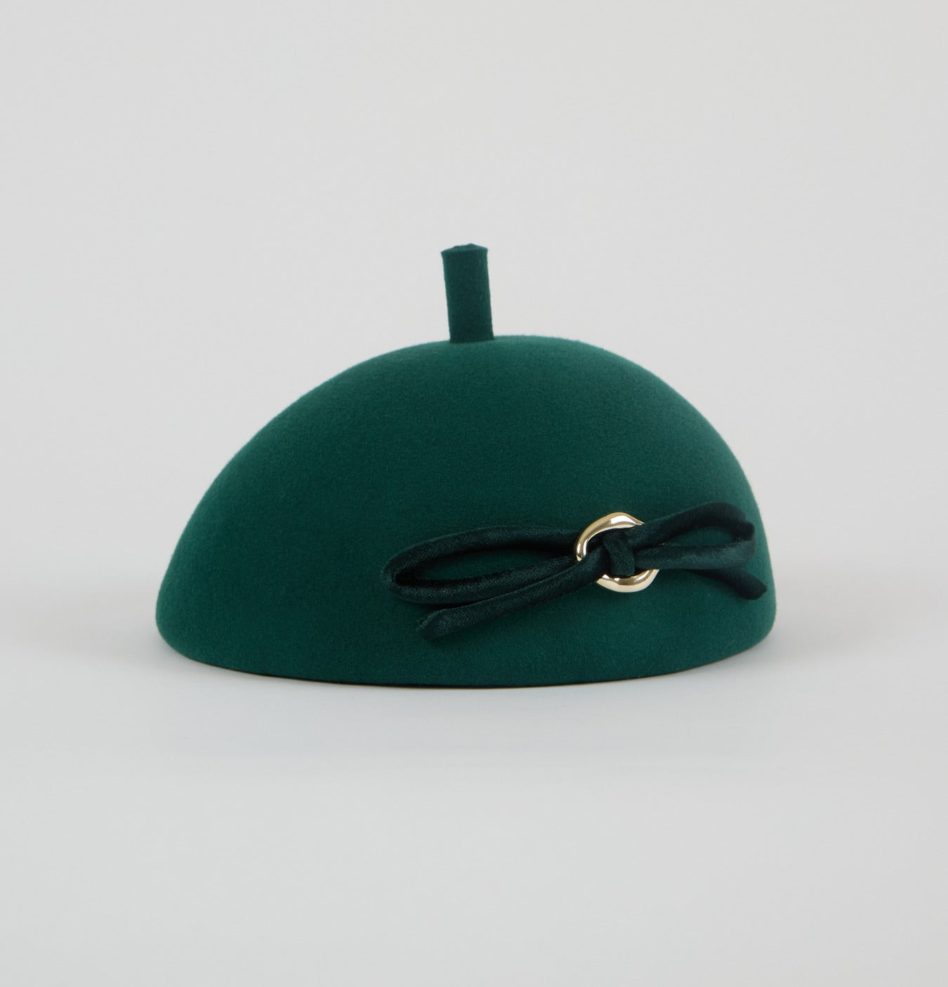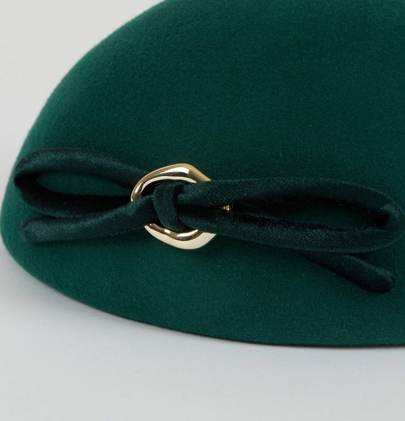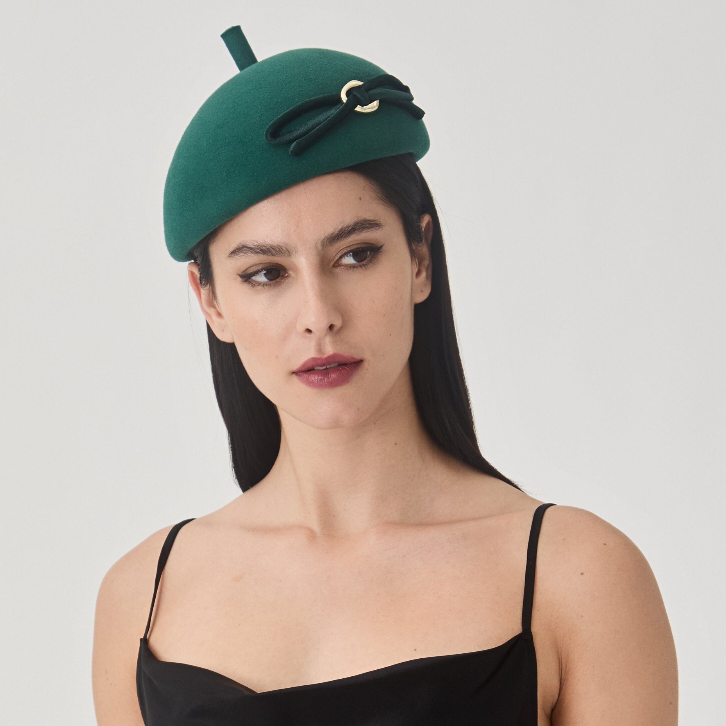 The Coco Beret in Emerald is crafted from soft wool felt and adorned with a plush velvet bow in matching emerald. Sculptural yet refined, it embodies quiet luxury — an instant icon within the Holiday 2026 collection.