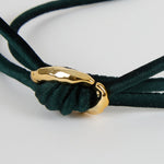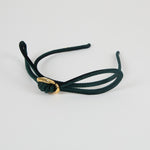 The Dolores Headband is crafted from sumptuous emerald panné velvet and finished with a sculptural bow, centered by a gold-tone textured accent. Its rich tone and plush texture evoke the intimacy and allure of candle-lit evenings — refined, feminine, and enduring.