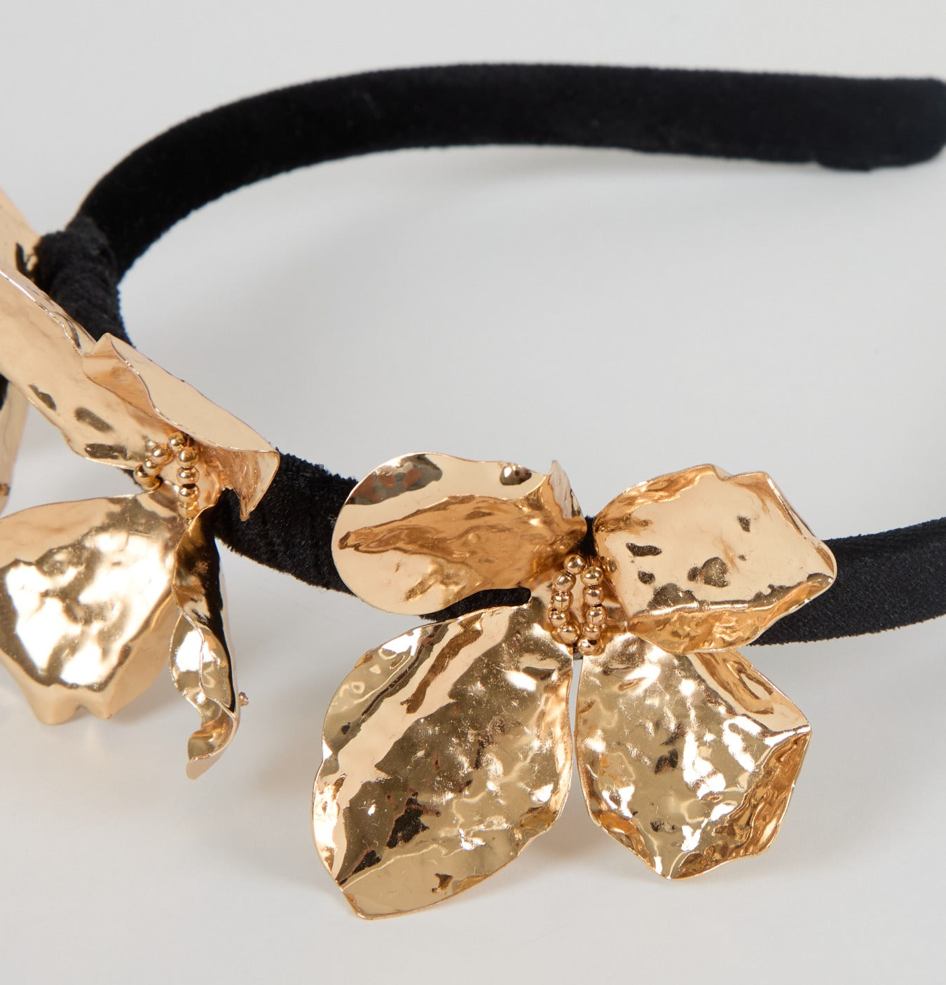 Frida Headband – Black Panné Velvet with Gold Flowers