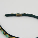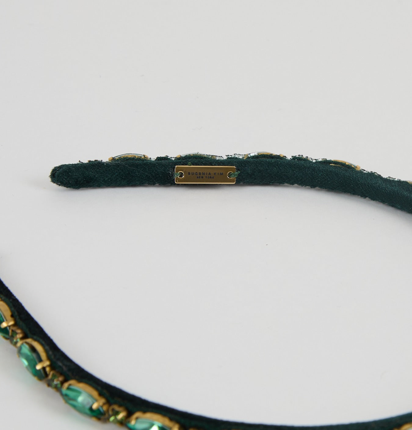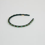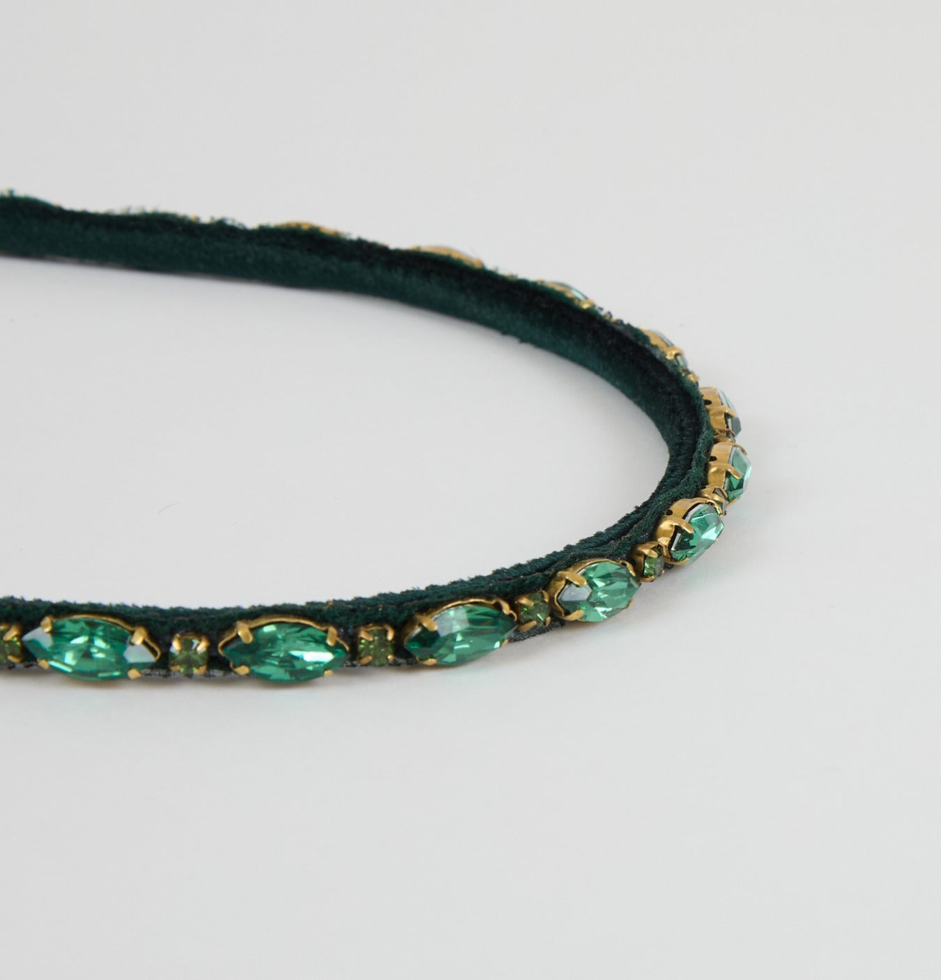 The Lux Headband pairs deep emerald panné velvet with faceted crystals that glimmer like champagne against silk. Both decadent and disciplined, its sculptural silhouette recalls the quiet drama of Old Hollywood — designed for the woman who enters quietly but never unnoticed.