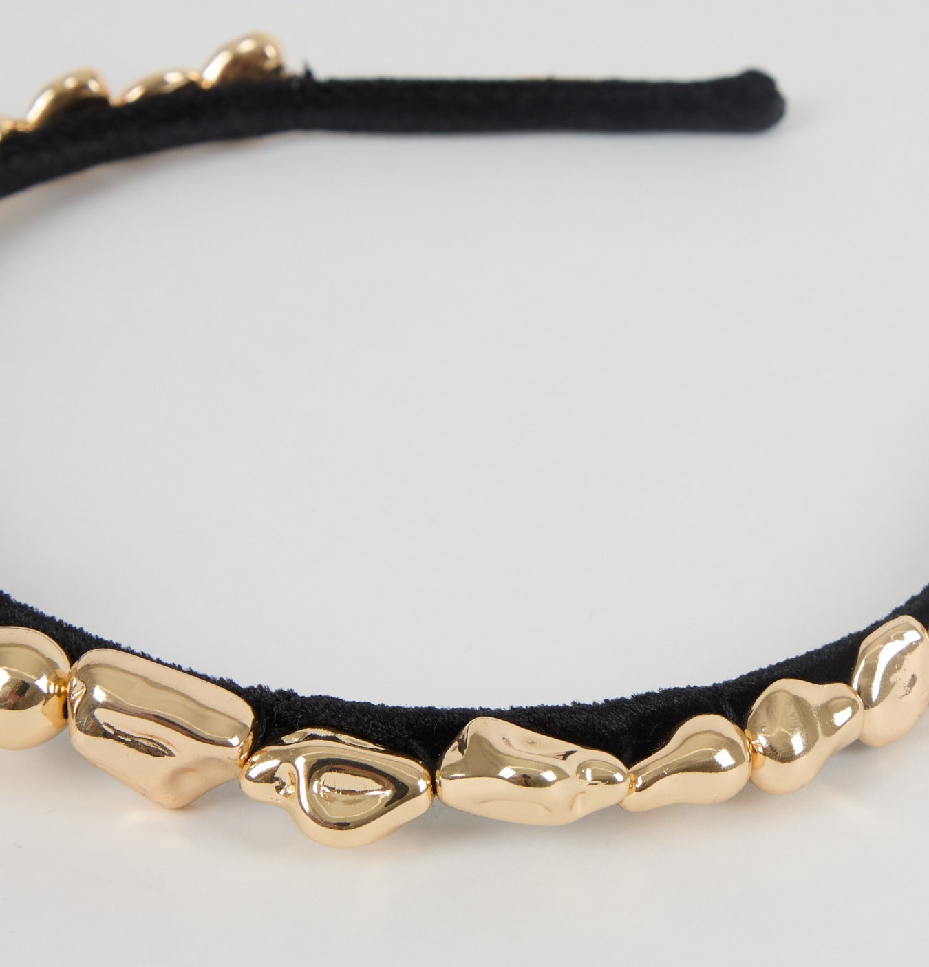 Nova Headband – Black Panné Velvet with Gold Abstract Stones