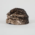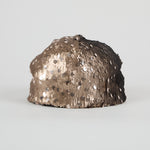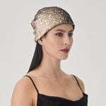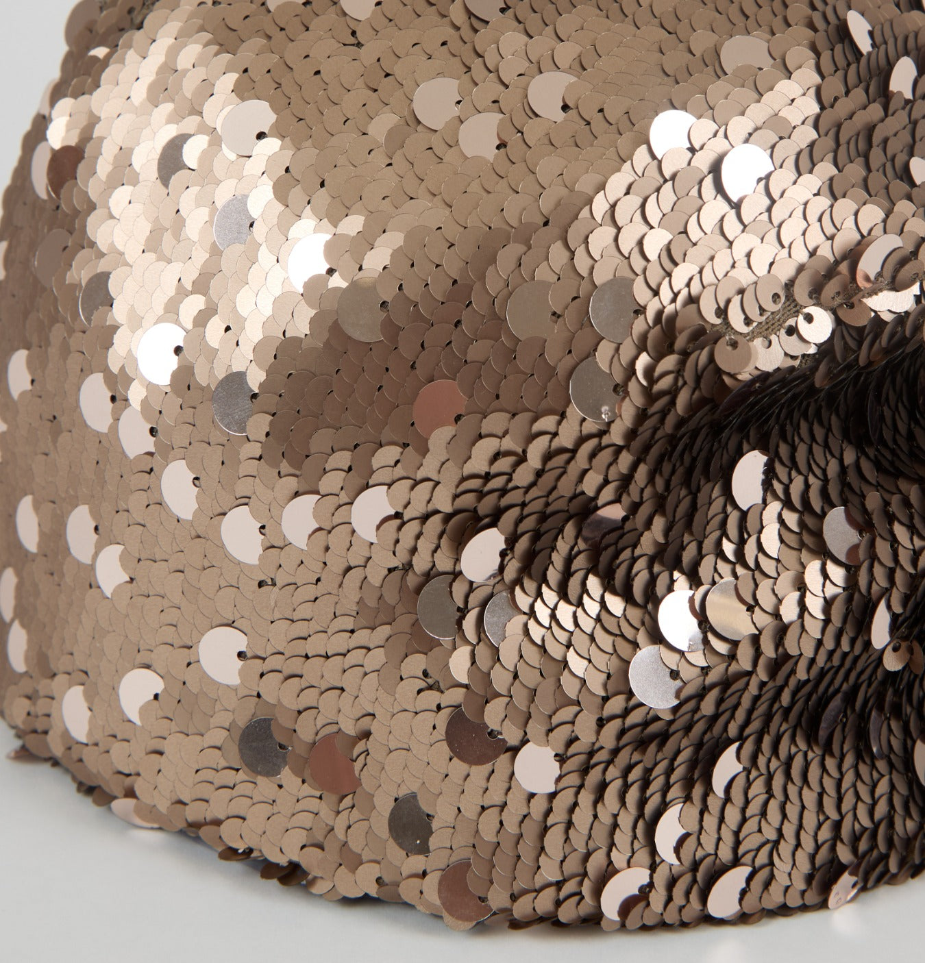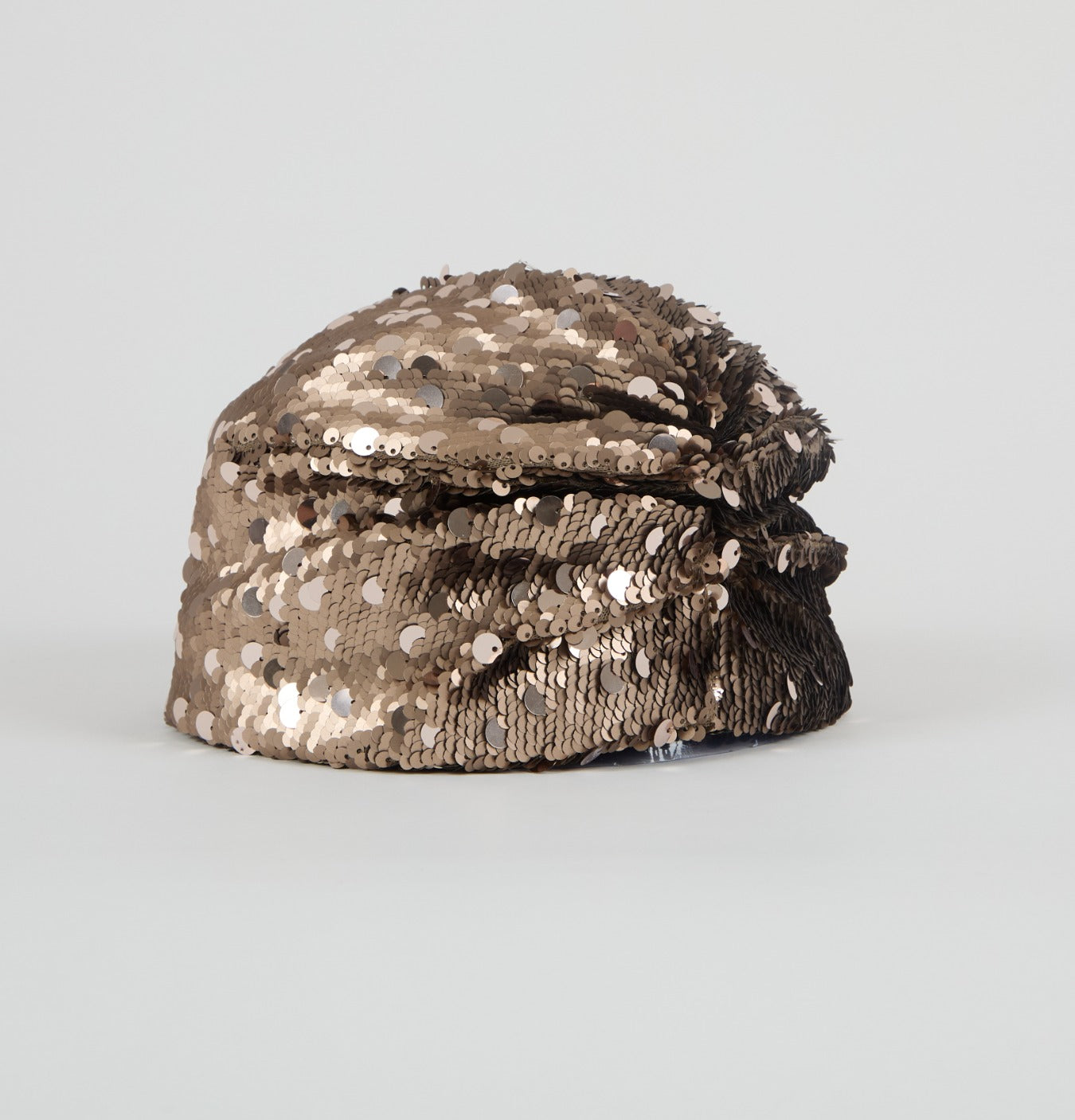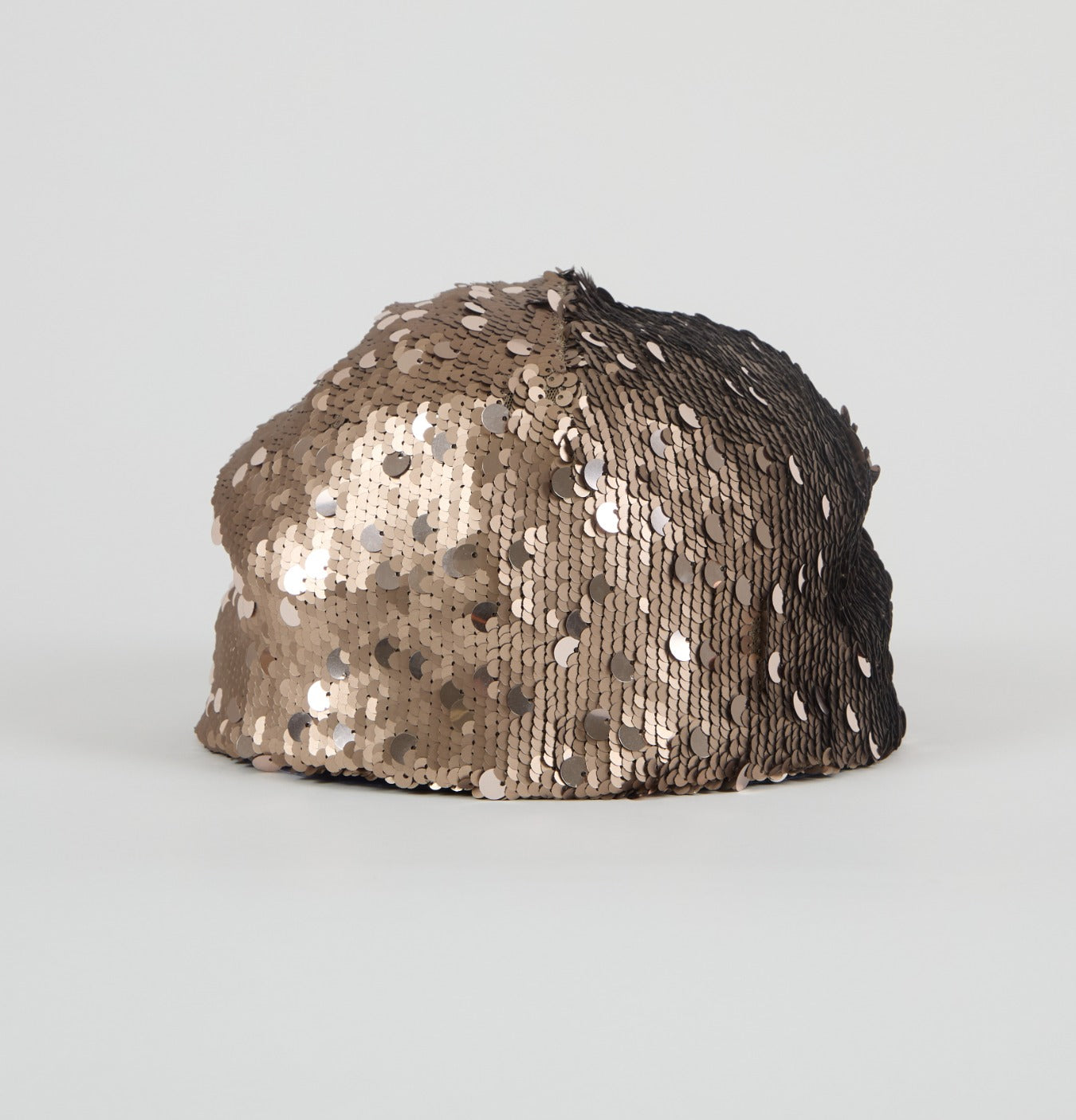 The Tallulah features Spanish sequin fabric combining 5 mm matte and 7 mm shiny sequins in the same tone, embroidered on an elastic knit base for multidimensional shine. Finished with an elastic band at the back for a comfortable, adjustable fit.