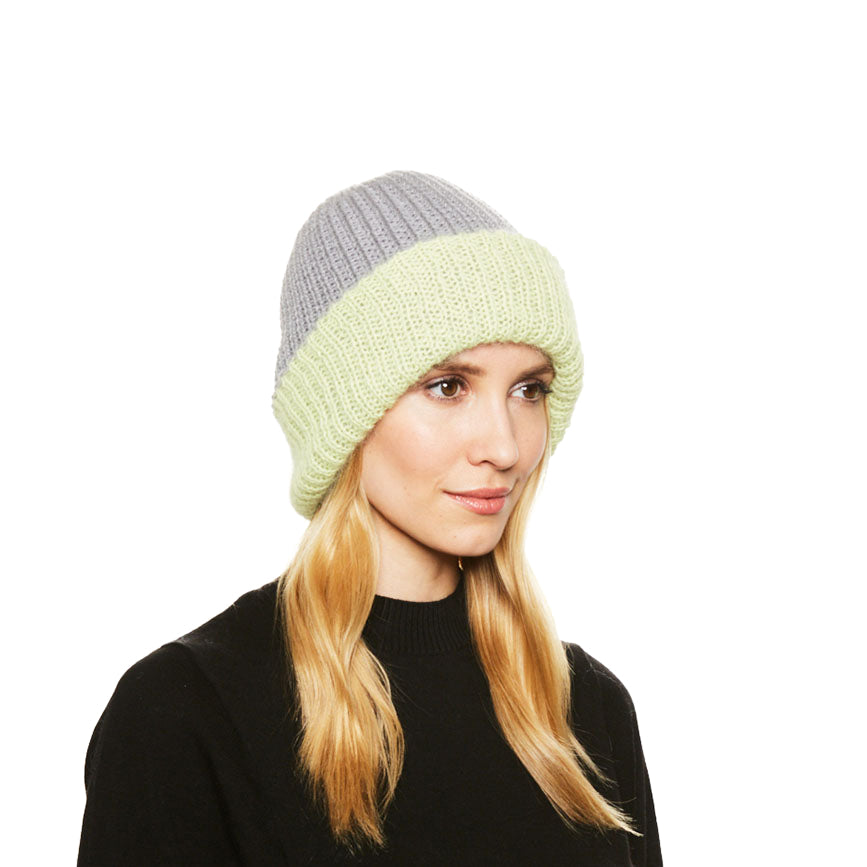 Reversible Heather italian angora and wool knit beanie is updated for winter in our gorgeous Citrine and Gray colorway.