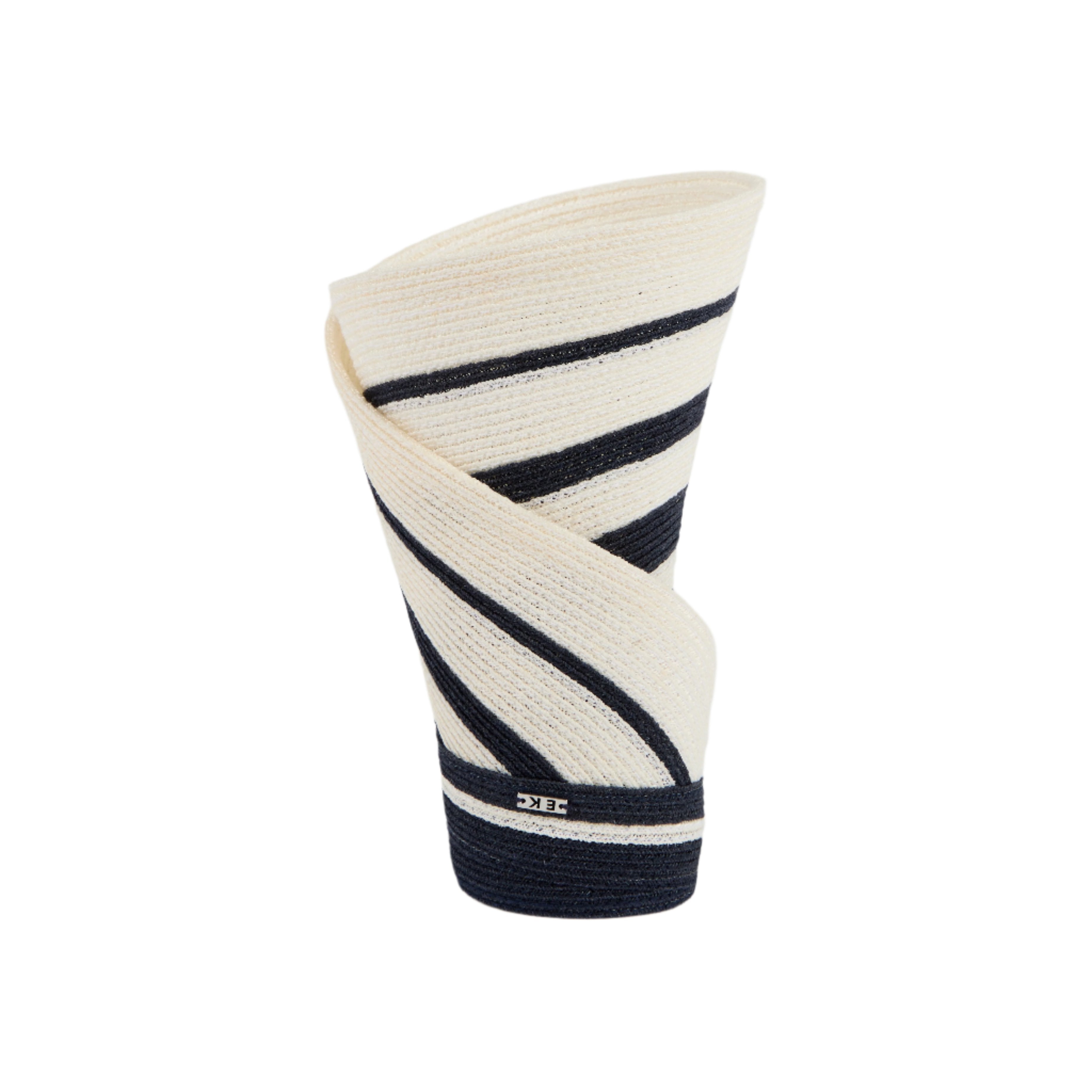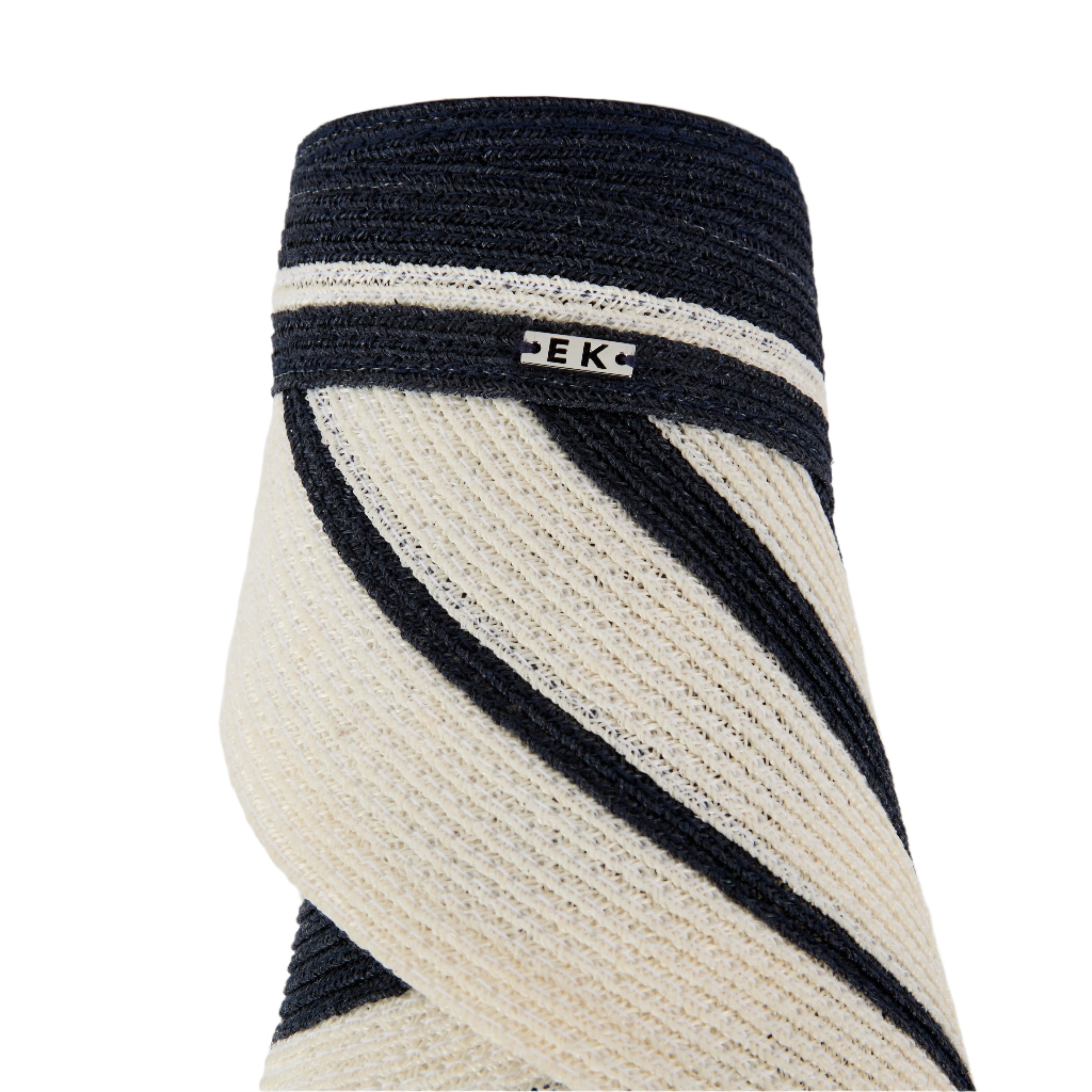 Navy/ivory striped hemp packable visor with silver logo plate.