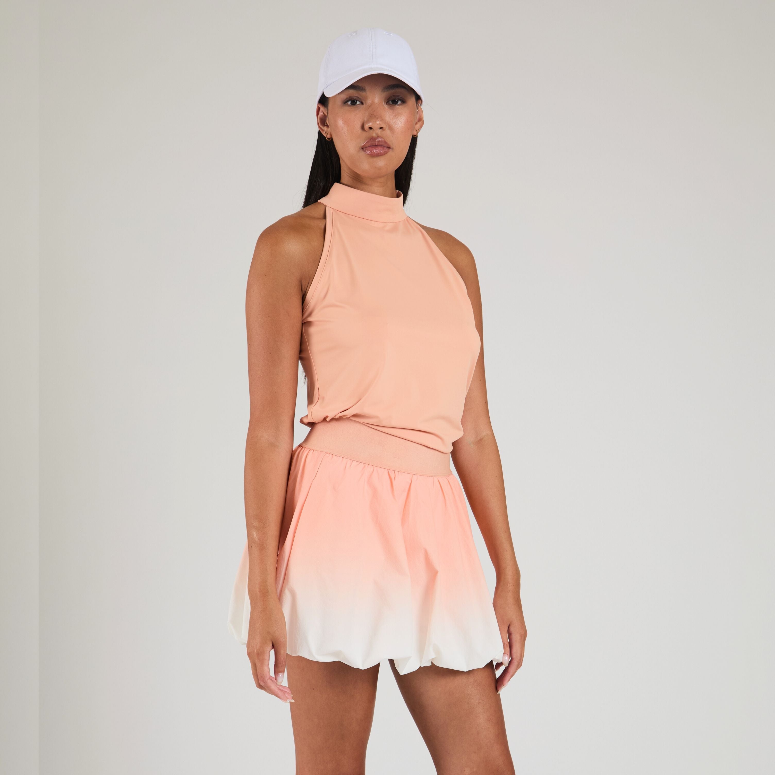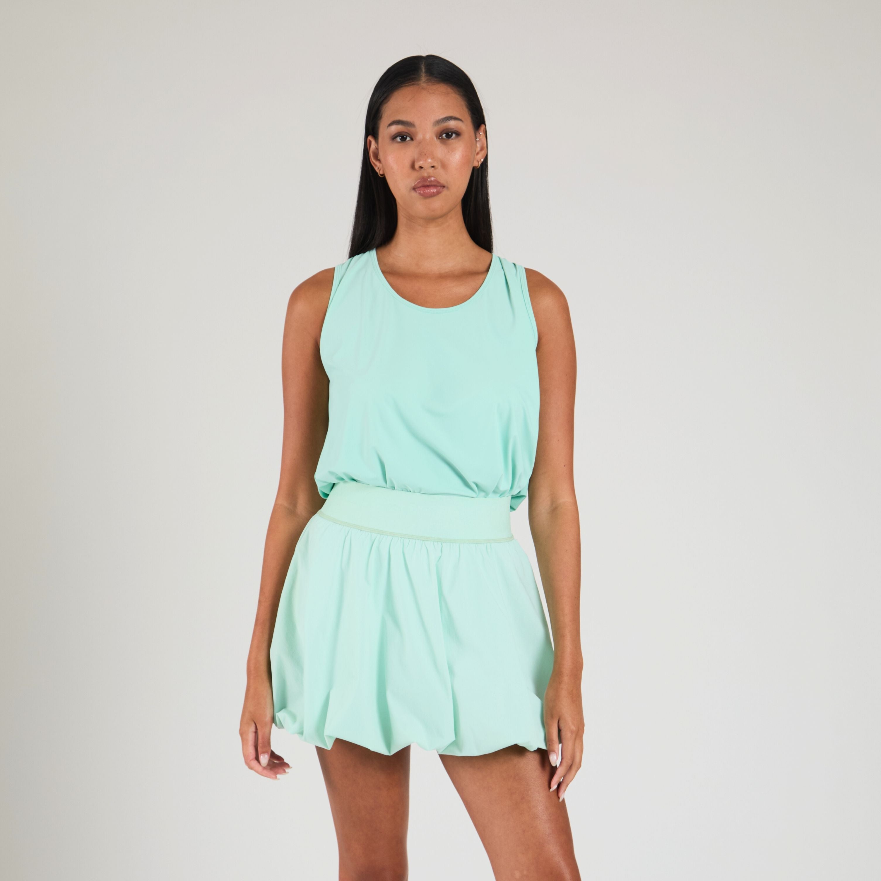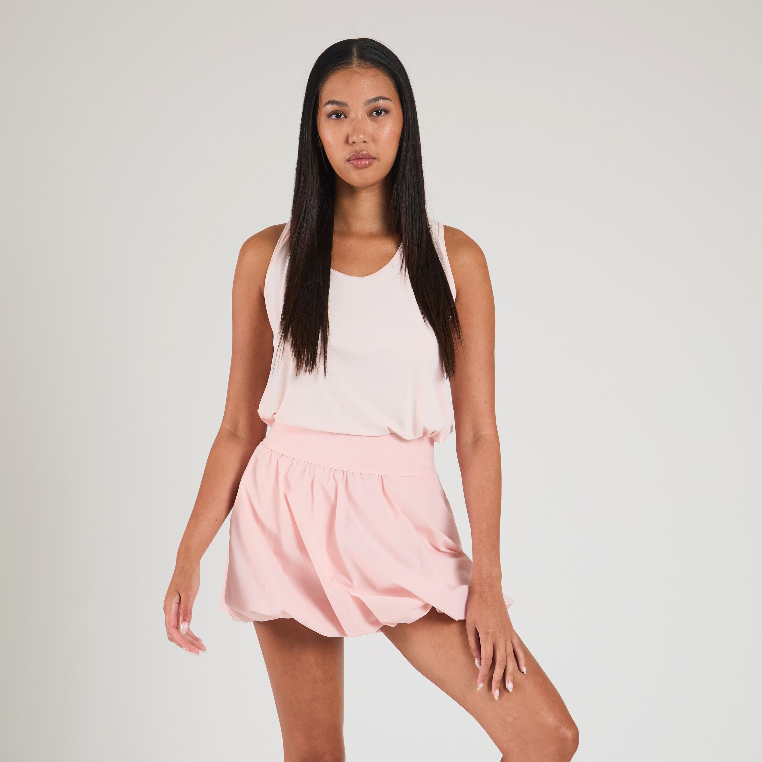 A sport-luxe capsule blending performance textures with modern femininity. From logo-embossed visors and pleated hats to playful terry headbands, each piece channels effortless off-duty elegance.