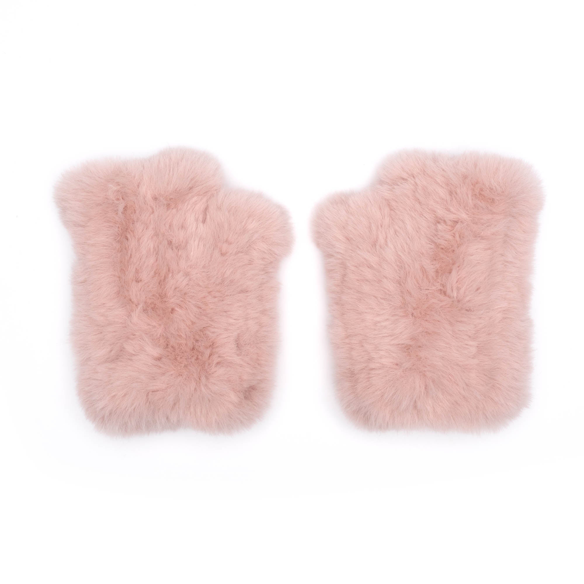Blush faux rabbit fingerless gloves.