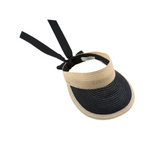 Natural vented hemp visor with black vented hemp bill and black grosgrain bow.