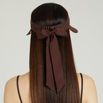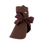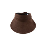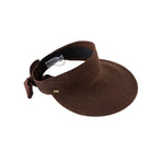 Chocolate metallic toyo packable UPF 30 protection visor with chocolate grosgrain ties and 14KT gold logo plate.