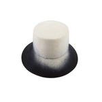 Striking yet subtle, the Ruby Bucket Hat features a winter white to black gradient in soft wool felt. With an asymmetric brim and gunmetal logo plate, it's an edgy twist on classic elegance.