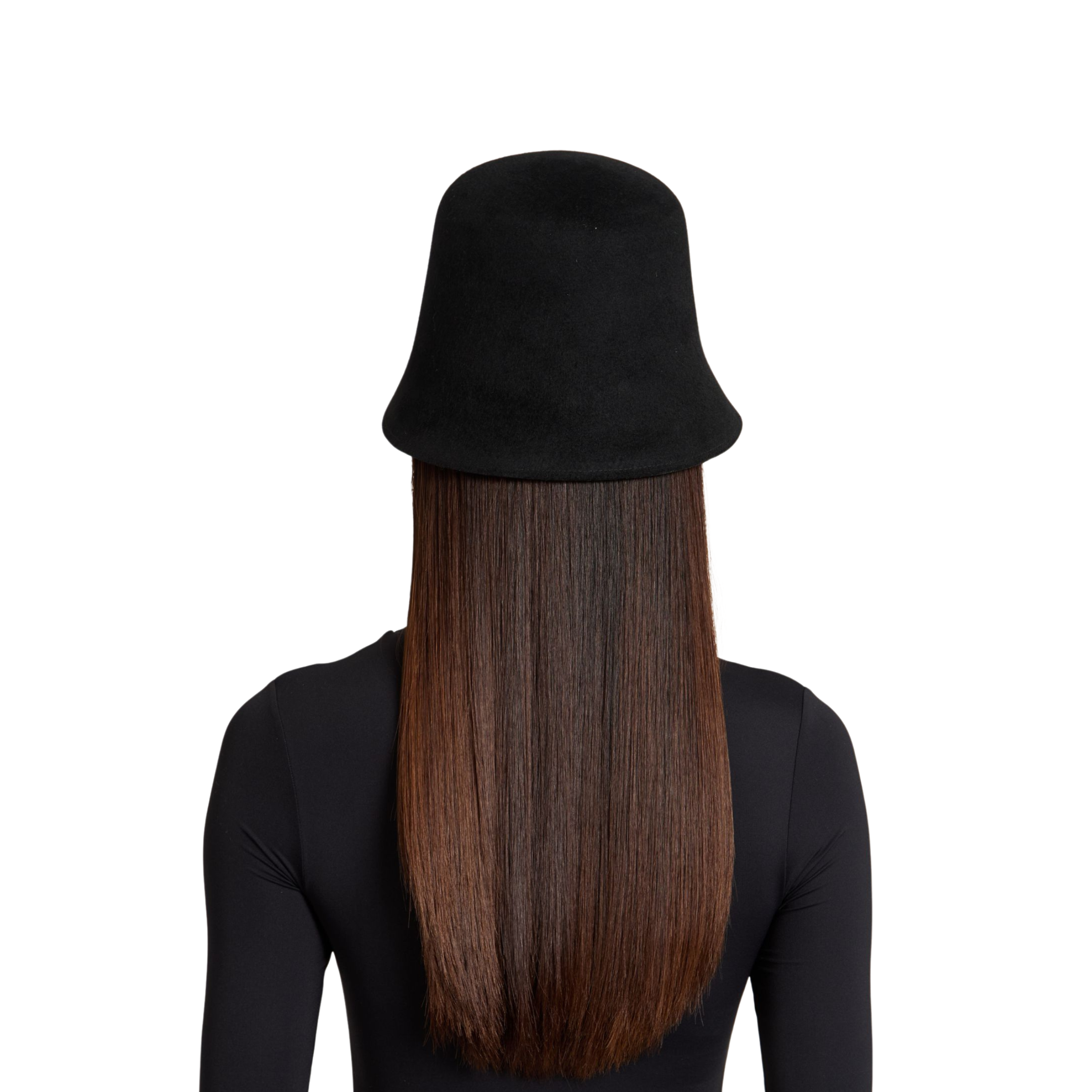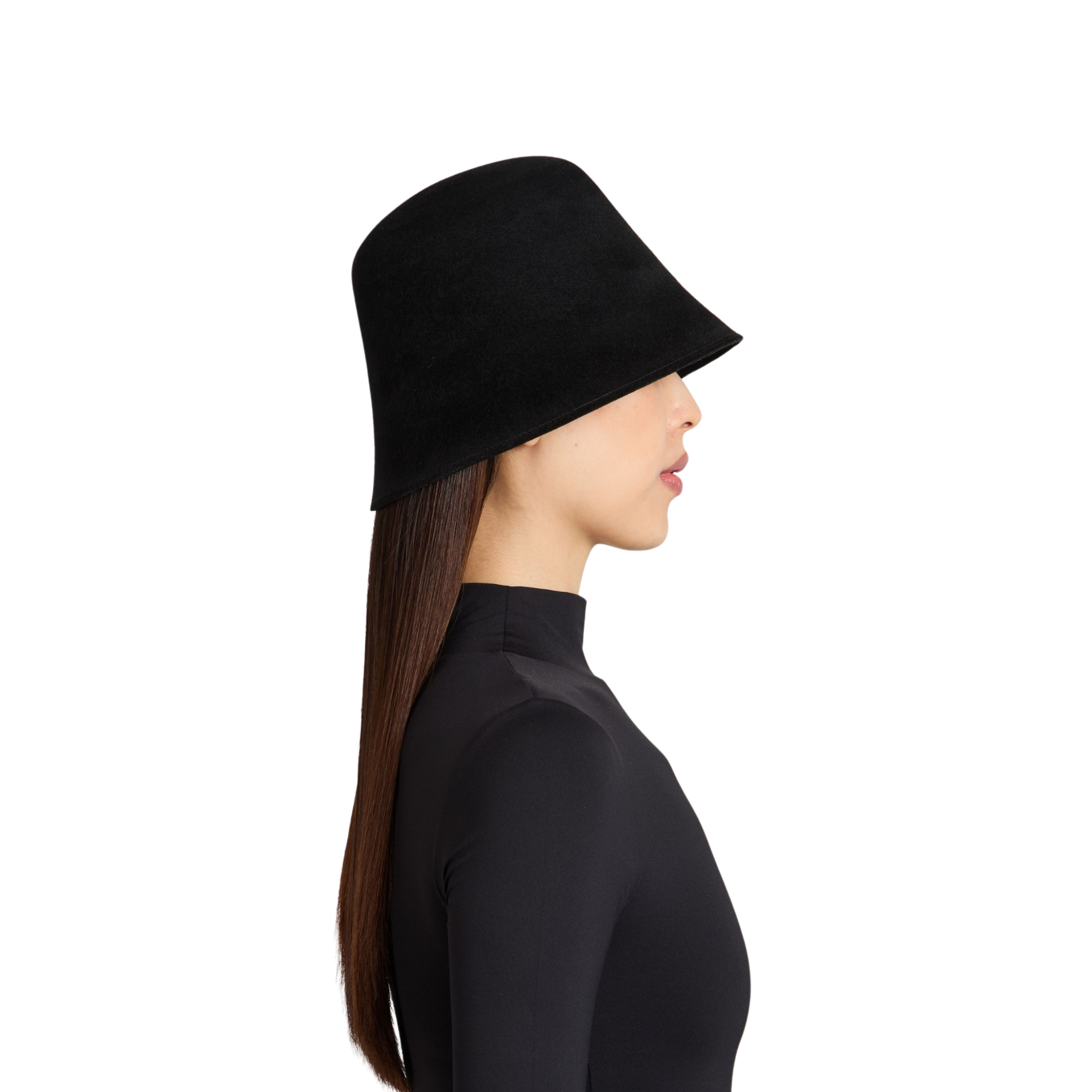 Your new staple this season. With its buttery black wool felt and understated gold detail, this bucket hat is the embodiment of effortless cool. Slip it on, and let the world take notice.