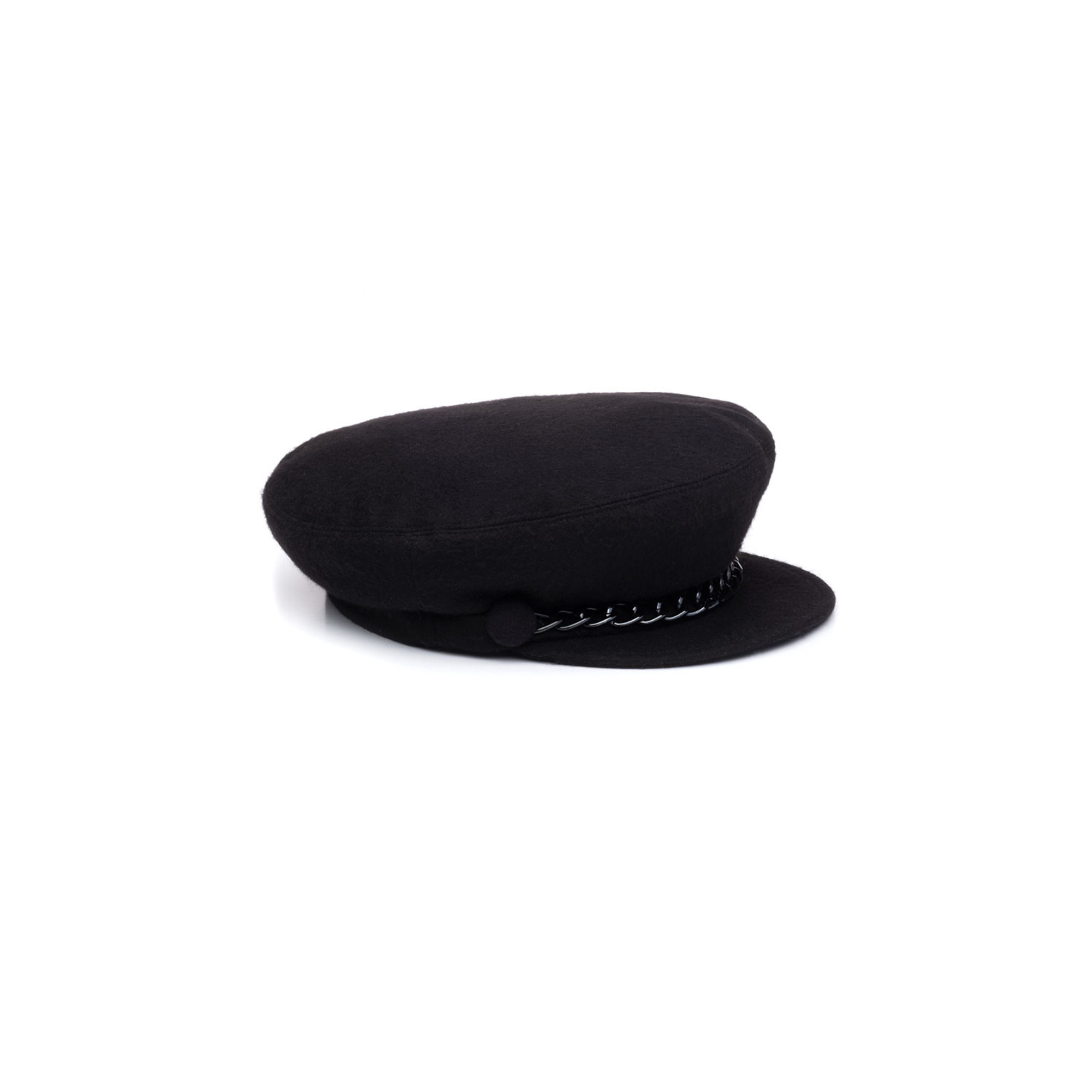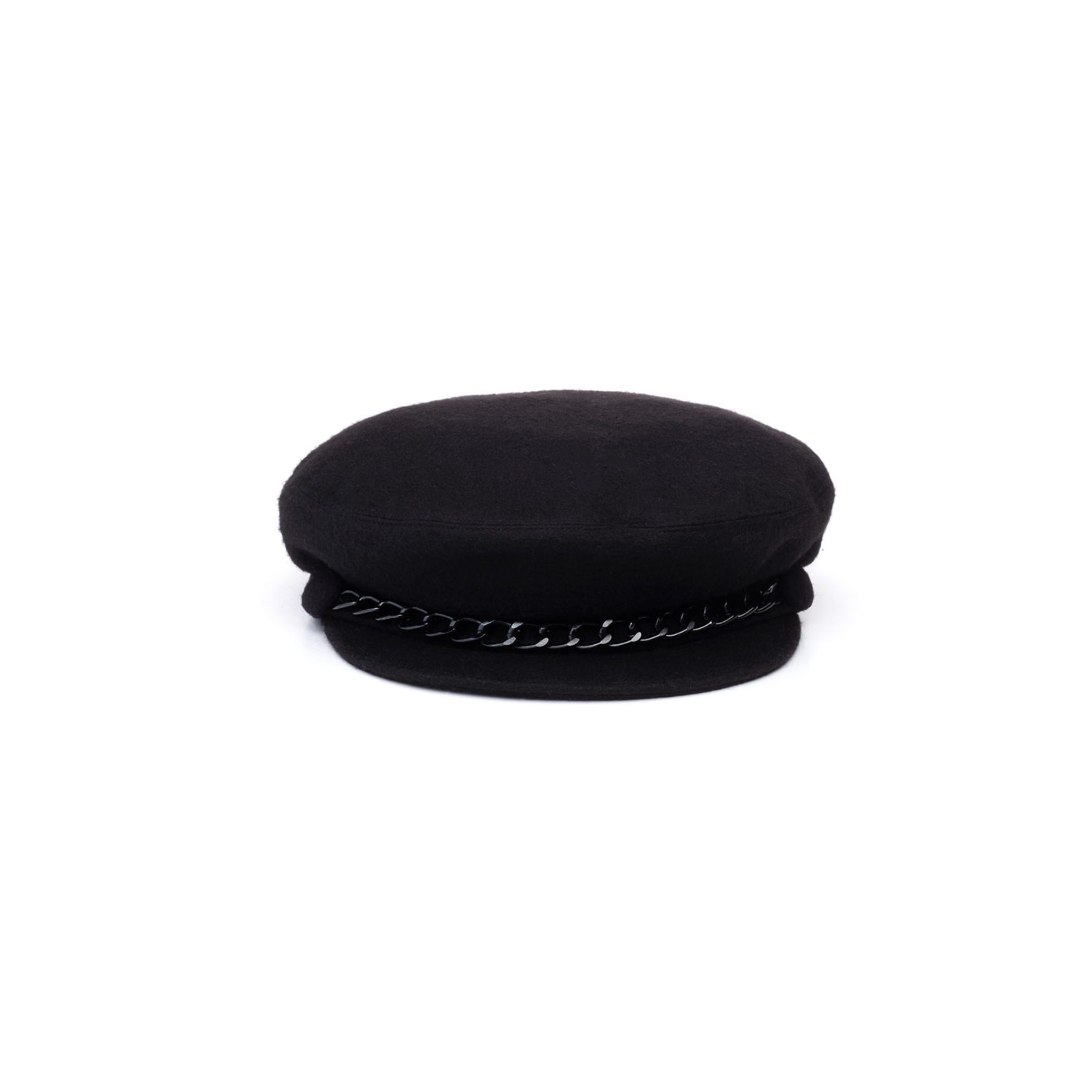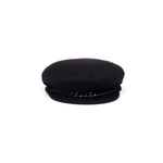 Our best-selling Marina remains one of the most beloved caps in the Eugenia Kim universe. Available in a luxe Black cashmere with tonal Black chain, this marine cap will always be one of our go-to's.