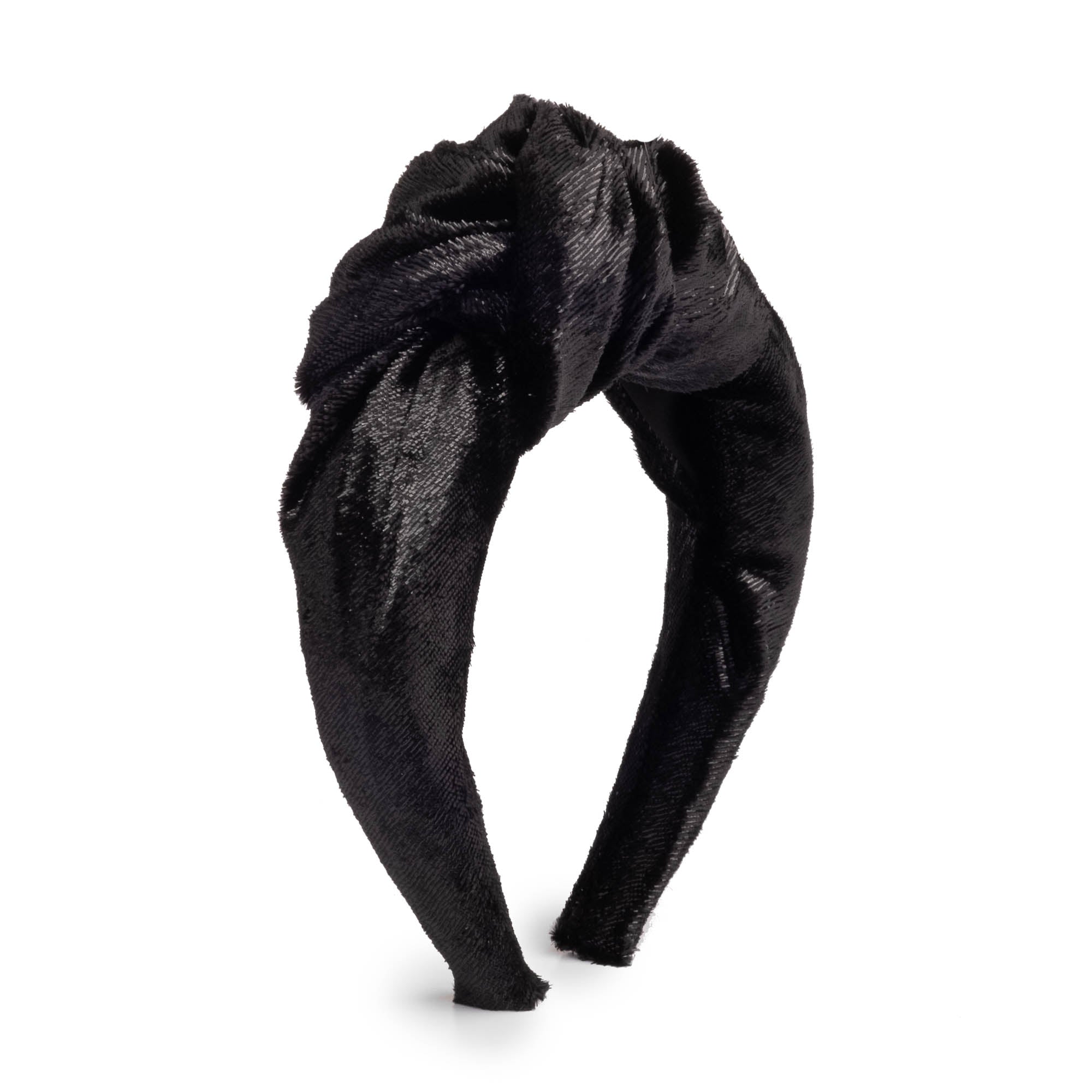 From the Eugenia Kim Holiday 2019 Collection. Our best-selling Maryn headband in Black metallic velvet features a signature top knot.
