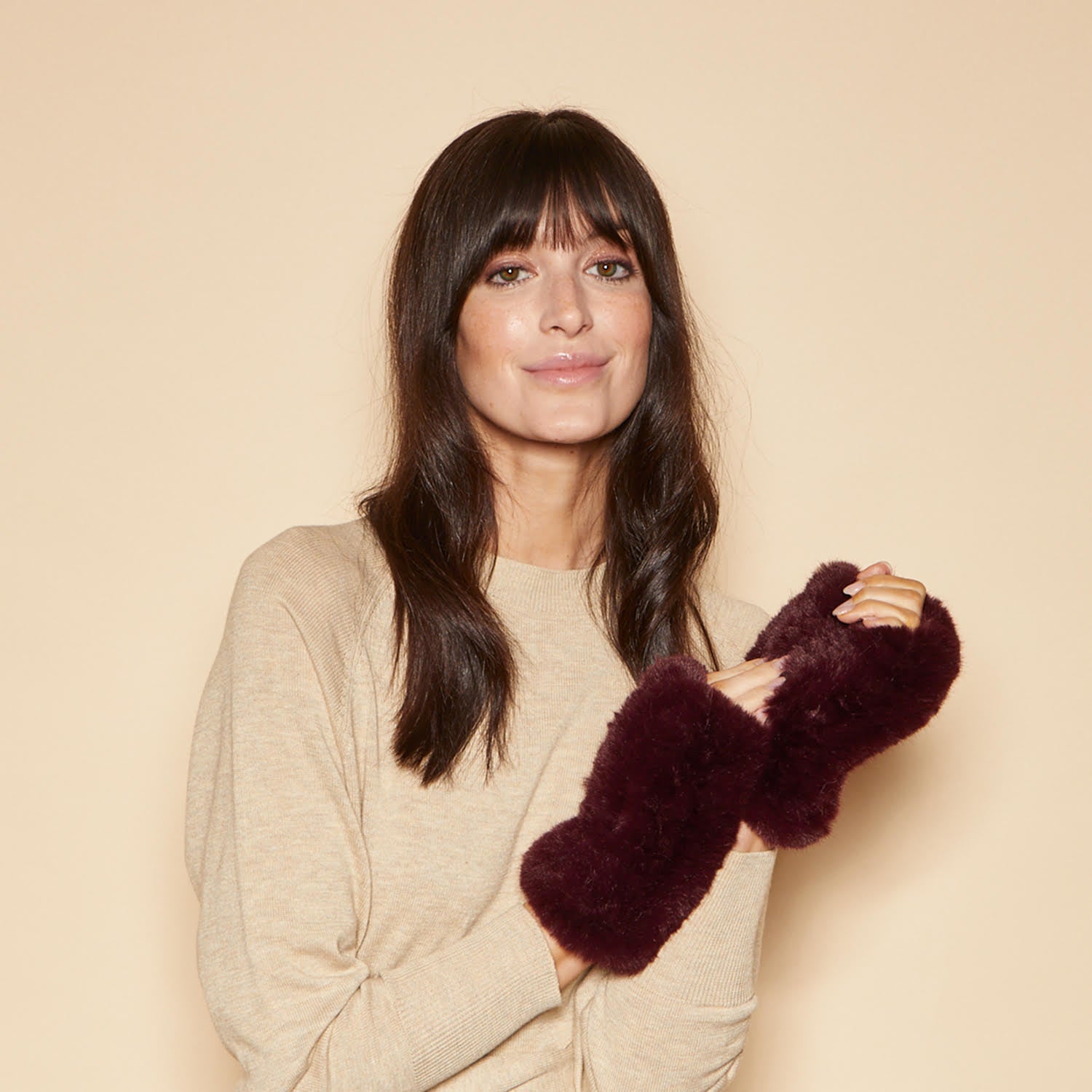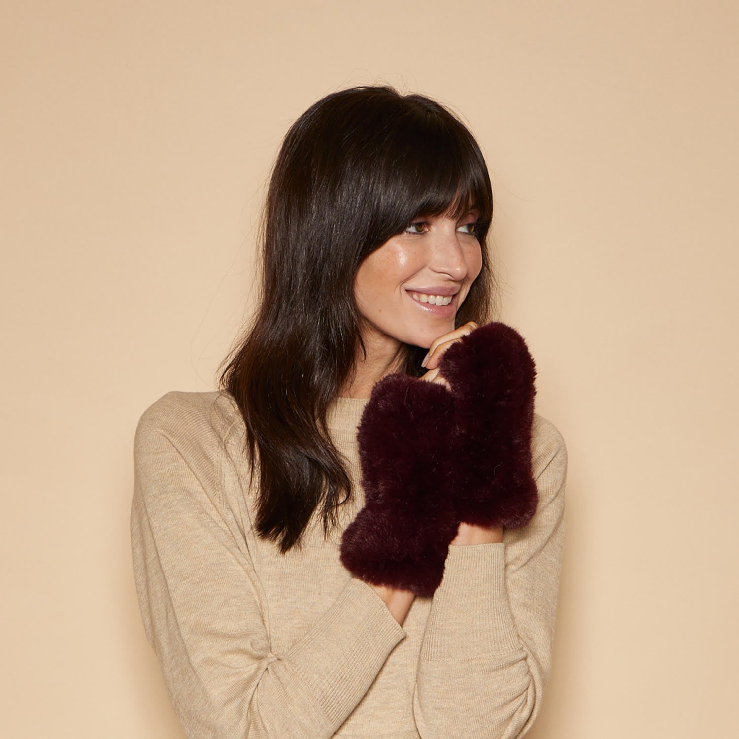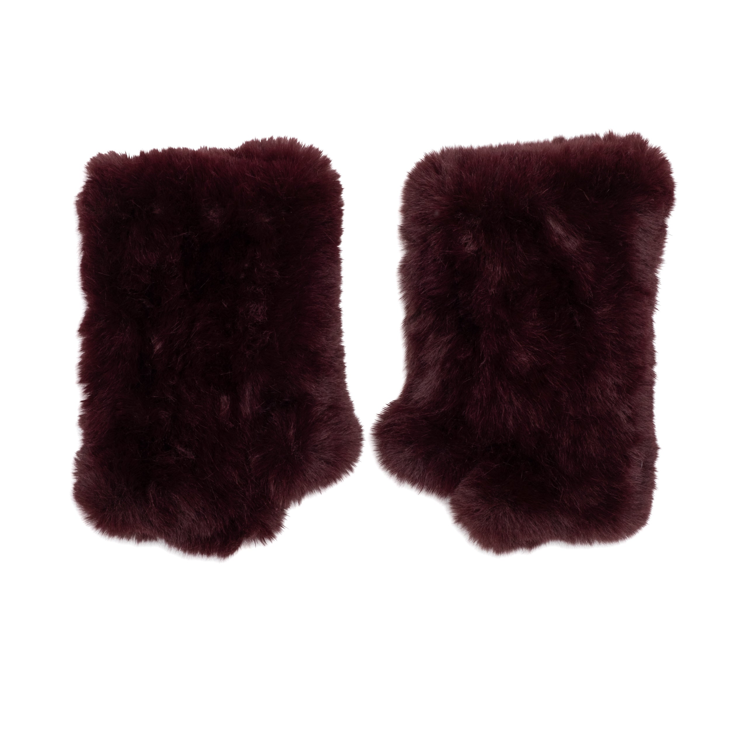 Bordeaux faux rabbit fingerless gloves