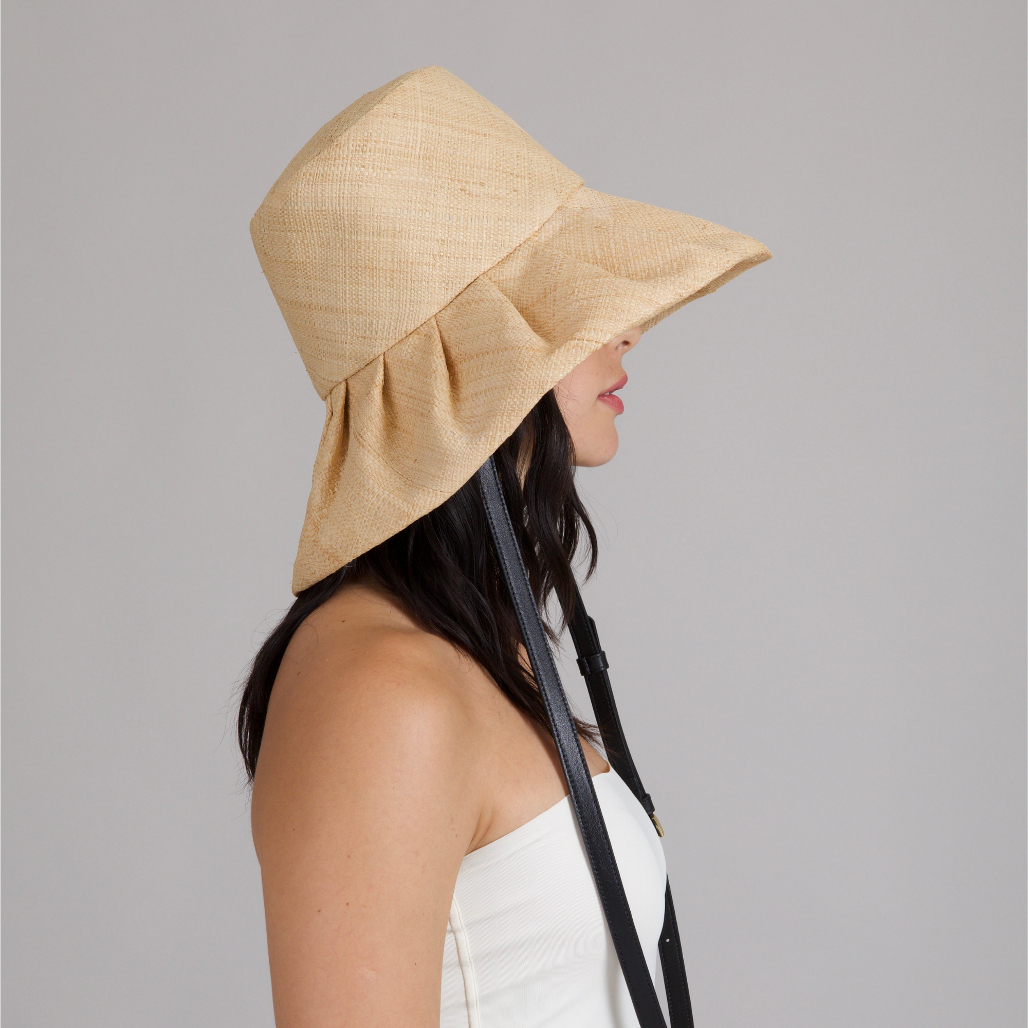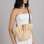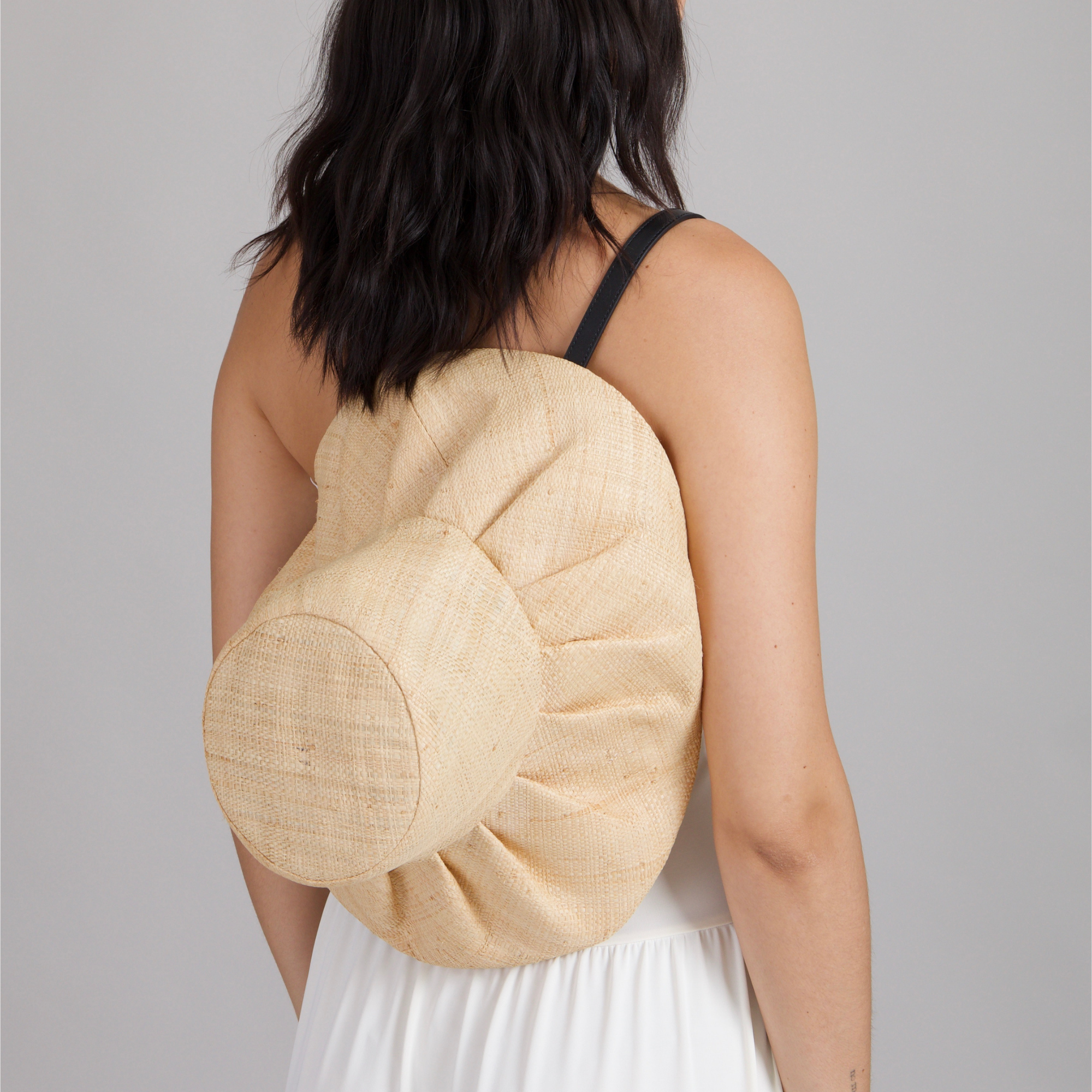 A transformative natural raffia design that shifts from effortless handbag to sun-shielding hat, marrying innovation with wanderlust romance.