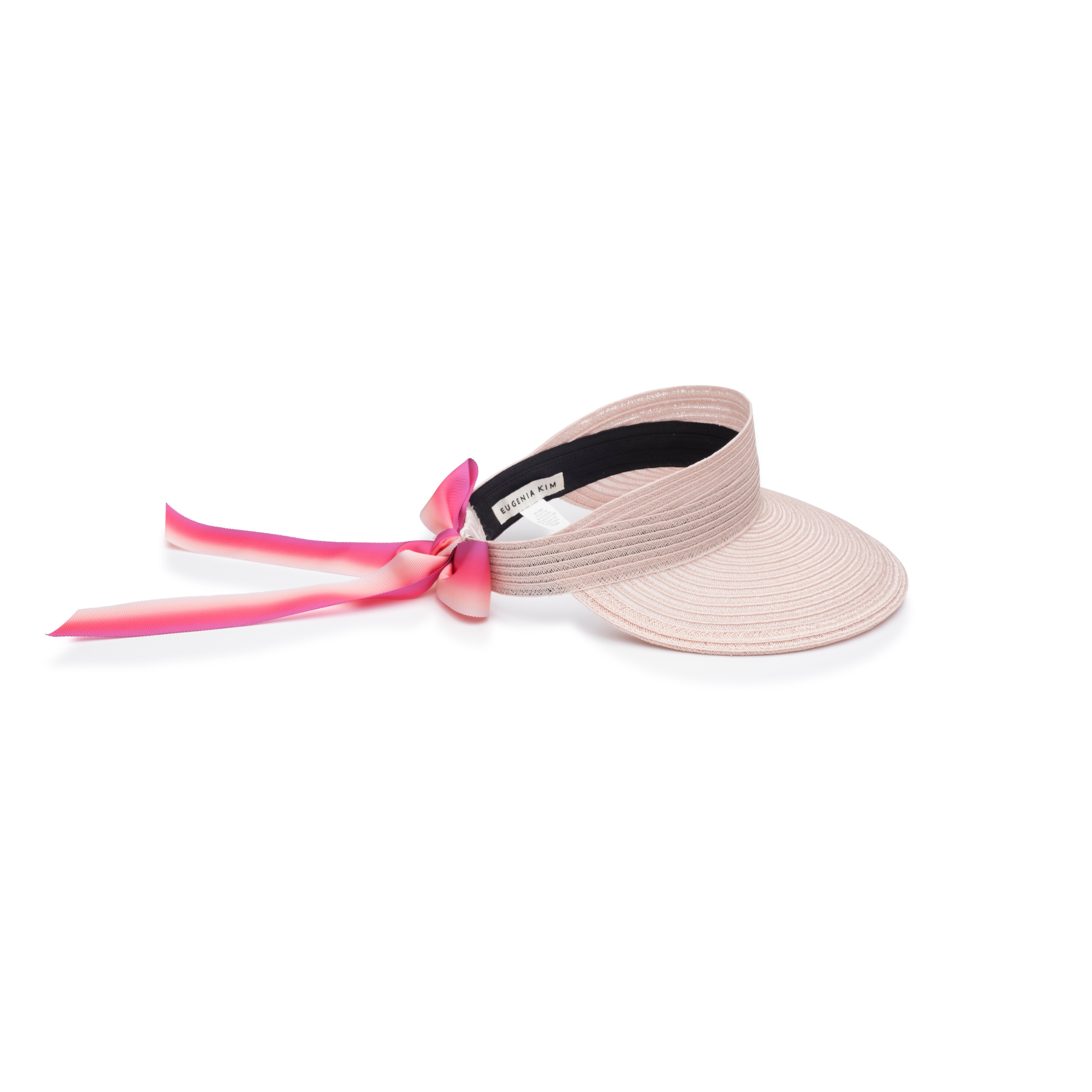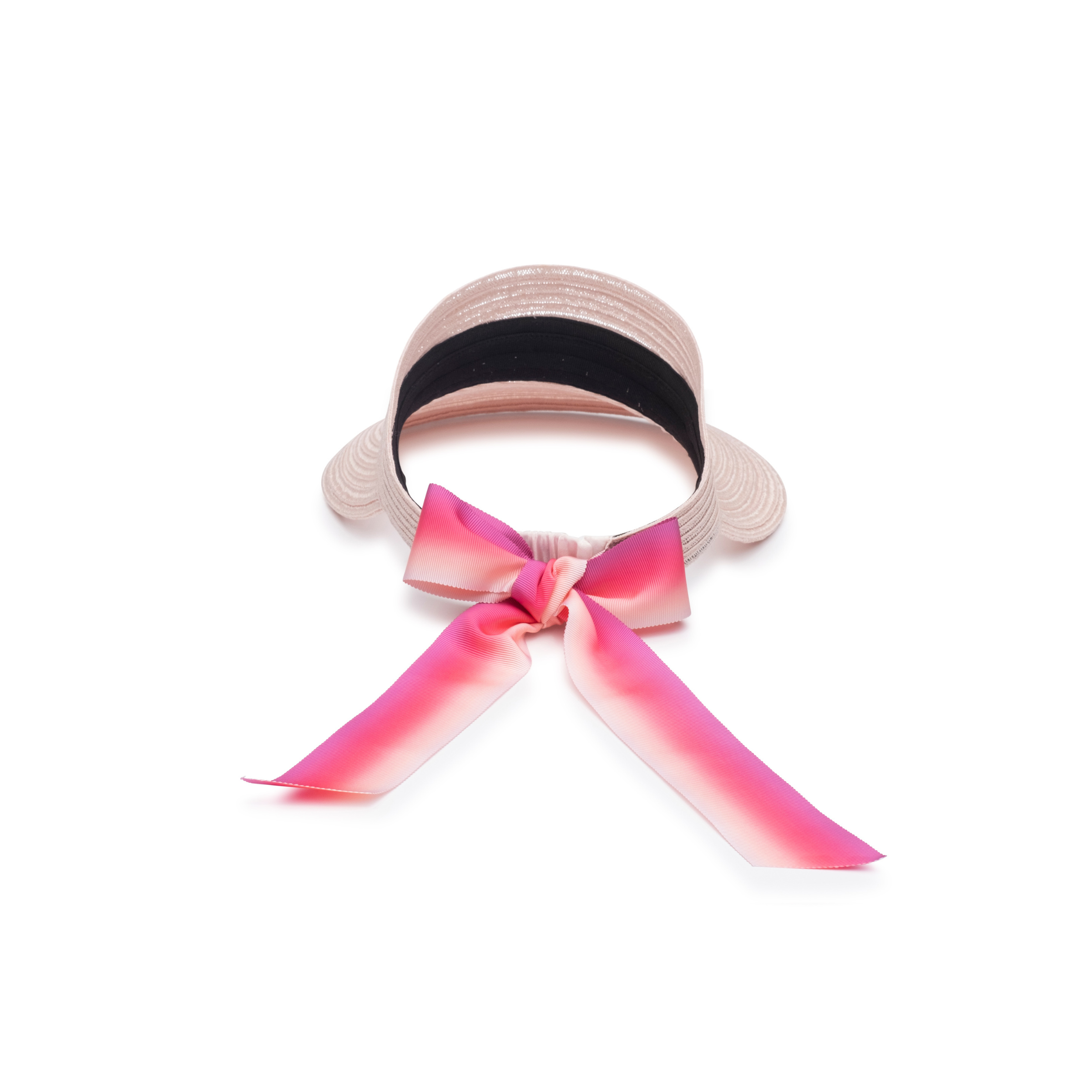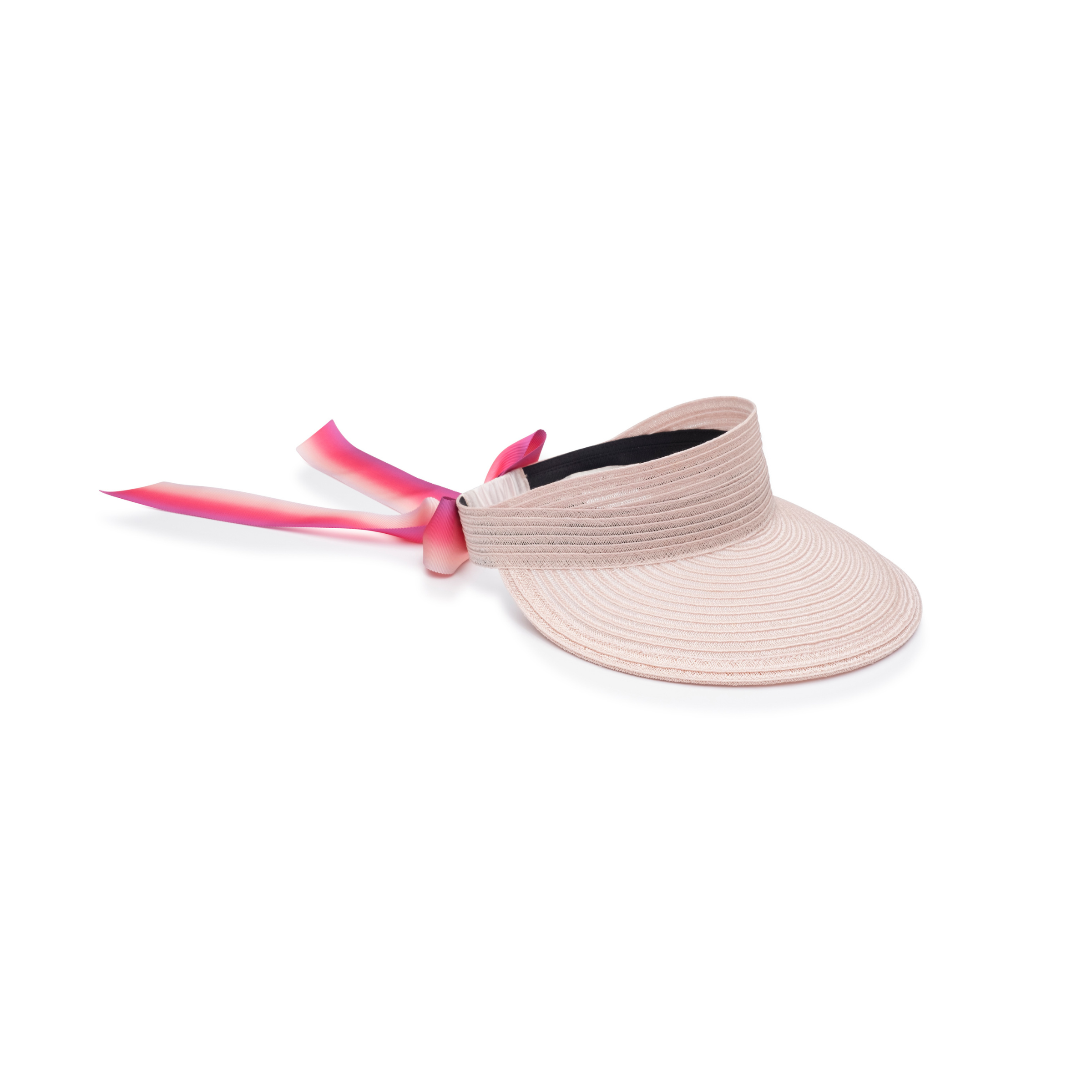 Blush vented hemp packable visor with pink ombré grosgrain ties.