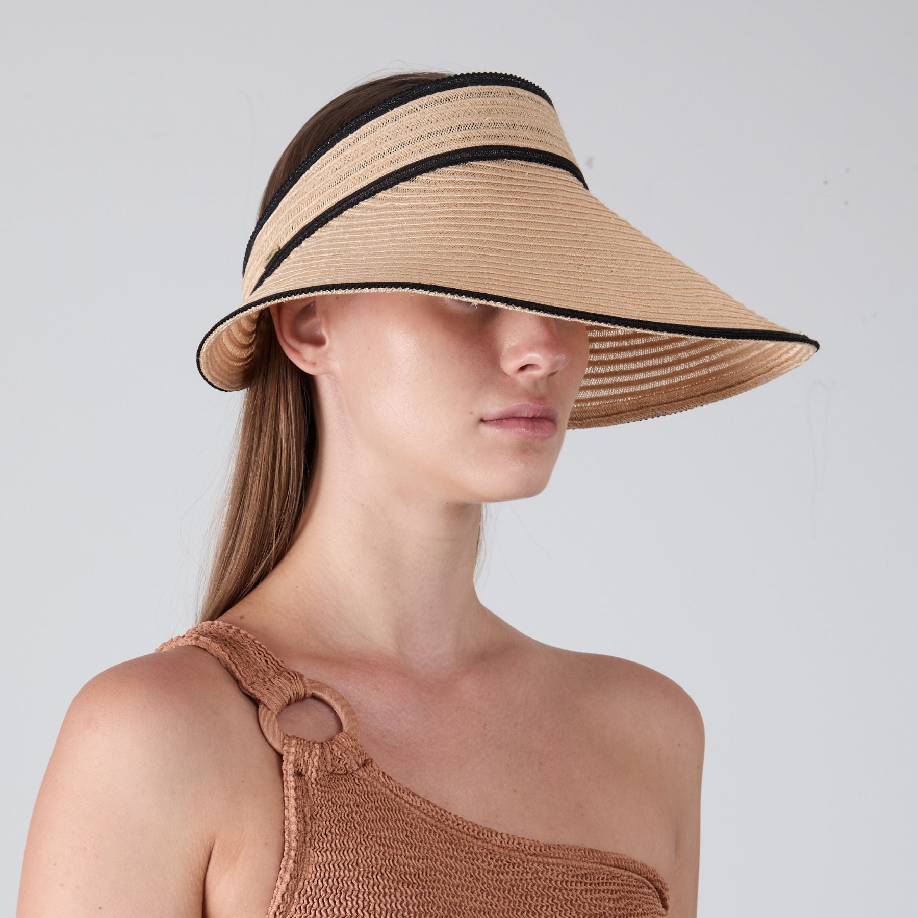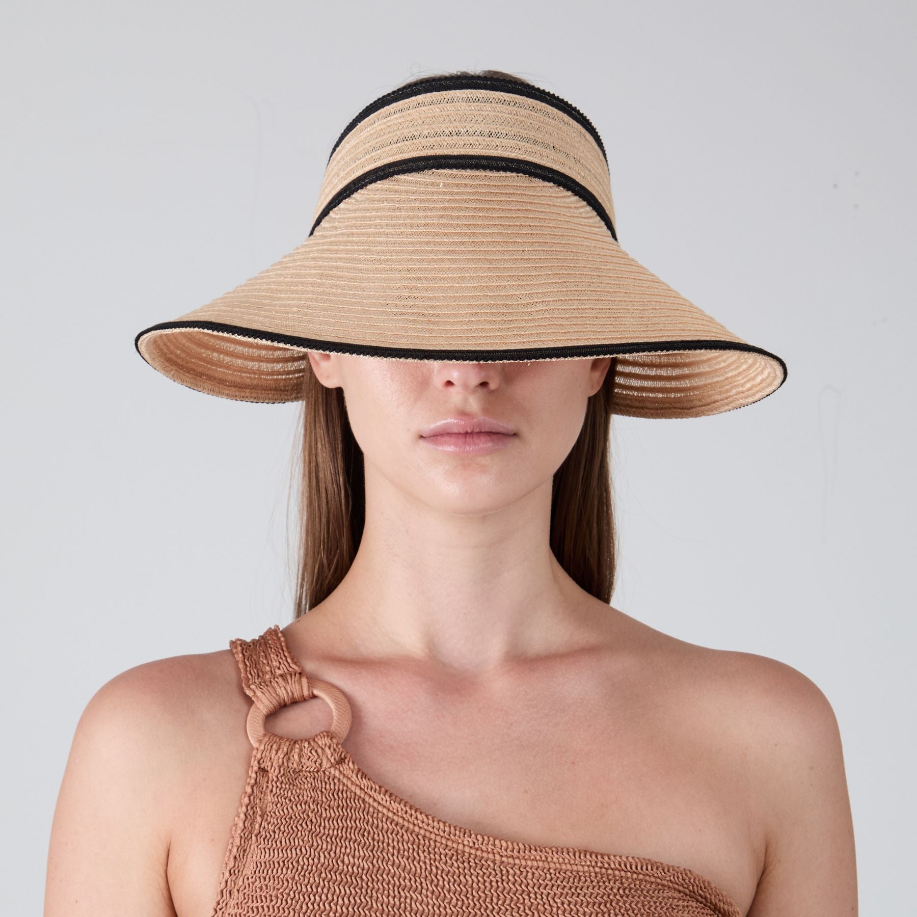 The Trixie Visor marries the perfect combination of coverage and packability. With a velcro closure, the visor can be rolled up and easily added to your bag, tote, and luggage. Made with a vented hemp straw, the Camel/Black combination is timeless.